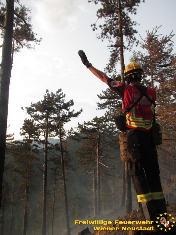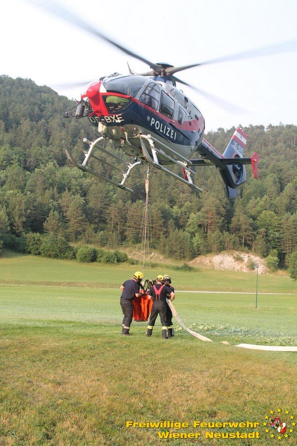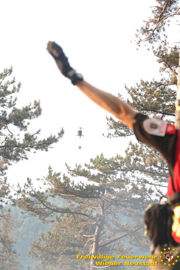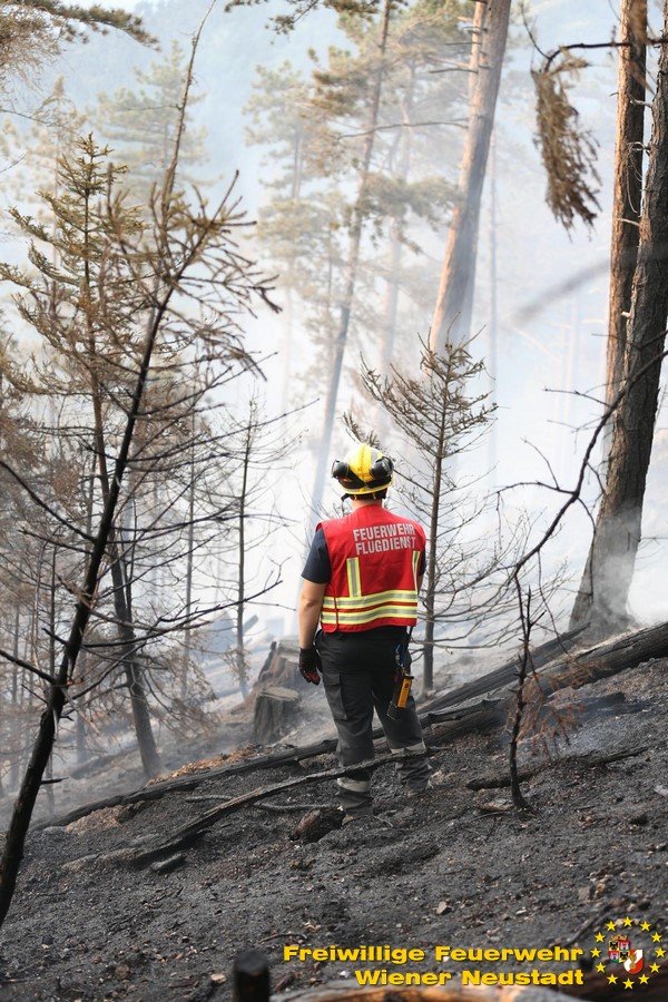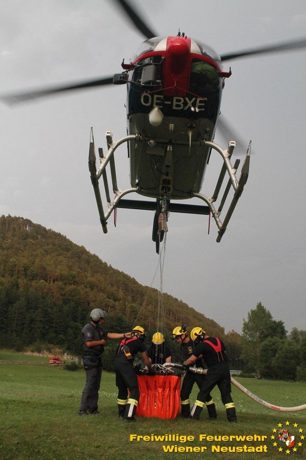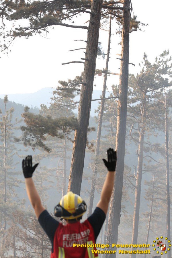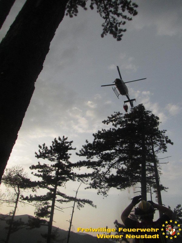 Der Einsatz der Flugdienst Basisgruppe Süd wird vorwiegend bei Waldbränden angefordert. Die – hauptsächlich aus Mitgliedern der Feuerwehr Wiener Neustadt bestehende – Basisgruppe Süd wurde um kurz nach 17 Uhr alarmiert und traf um kurz nach 18 Uhr im Einsatzraum ein.