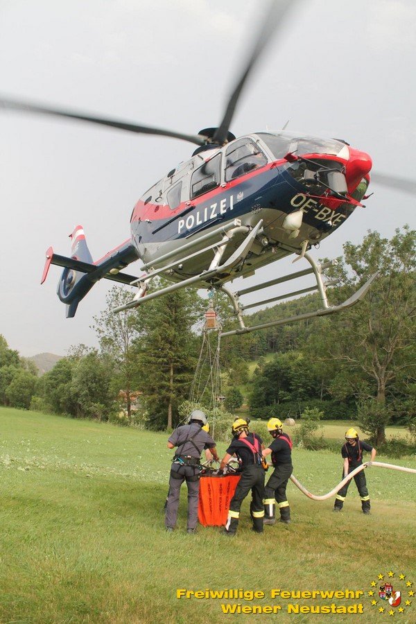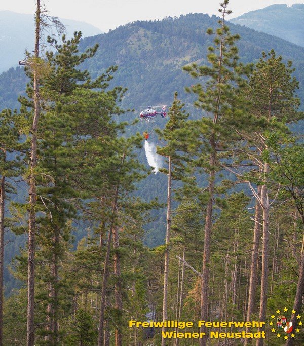Der Flugdienst des Niederösterreichischen Landesfeuerwehrverbandes hat in Wiener Neustadt die Basisgruppe Süd stationiert. Diese wurde zum Waldbrand im Waldgebiet bei Muggendorf und Gutenstein zur Unterstützung angefordert. Auch wurde von Wiener Neustadt ein Großtanklöschfahrzeug entsandt.