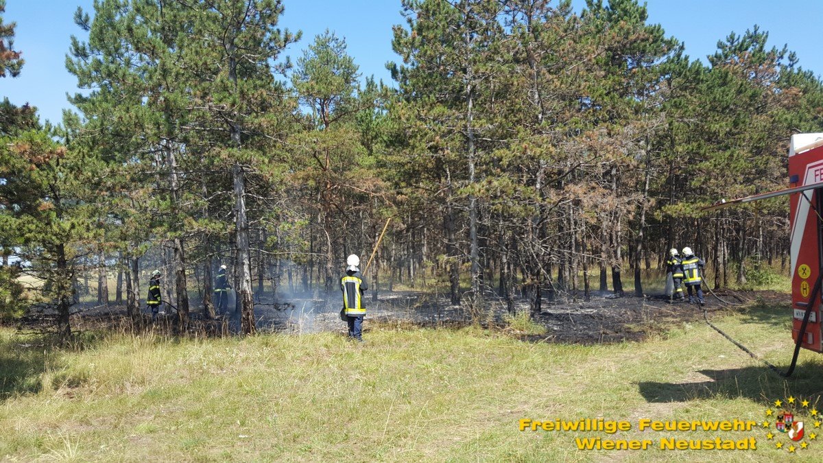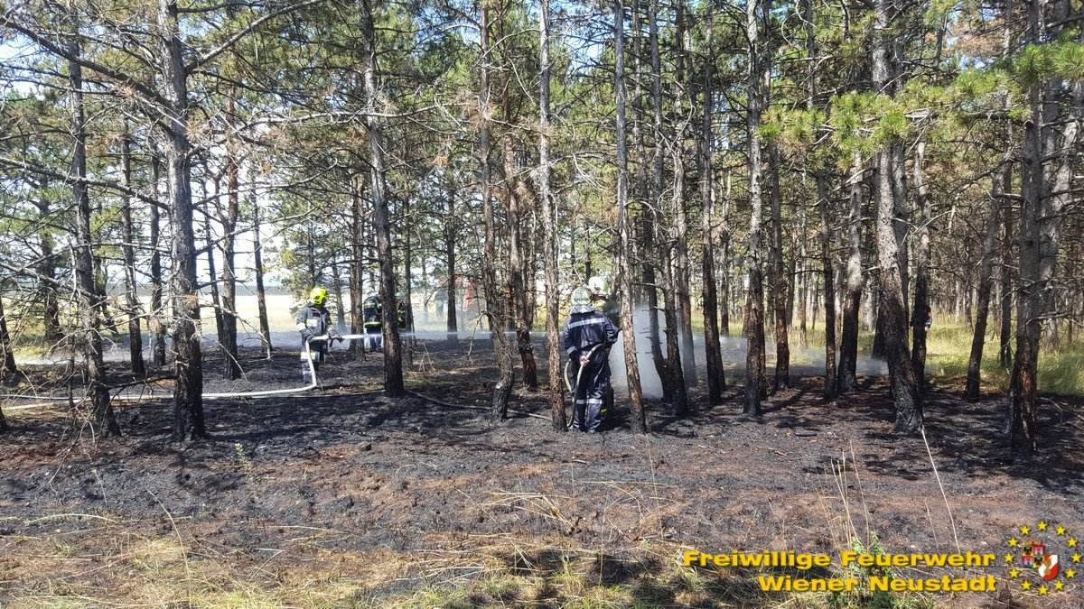 Während der Anfahrt der zuständigen Feuerwehr begann die Mannschaft der beiden Fahrzeuge mit der Bekämpfung der Flammen an der Flanke des Waldbrandes. Da kaum Wind auffrischte konnte die Ausbreitung sogleich verhindert werden. Die nachrückenden Kräfte übernahmen die Hauptlöscharbeit: Mit mehreren Rohren unter der Leitung von EABI Robert Kogelbauer von der FF Eggendorf wurde der Brandherd abgelöscht und mit viel Wasser der Waldboden getränkt. Die Feuerwehr Zillingdorf konnte noch während der Anfahrt wieder abbestellt werden.
