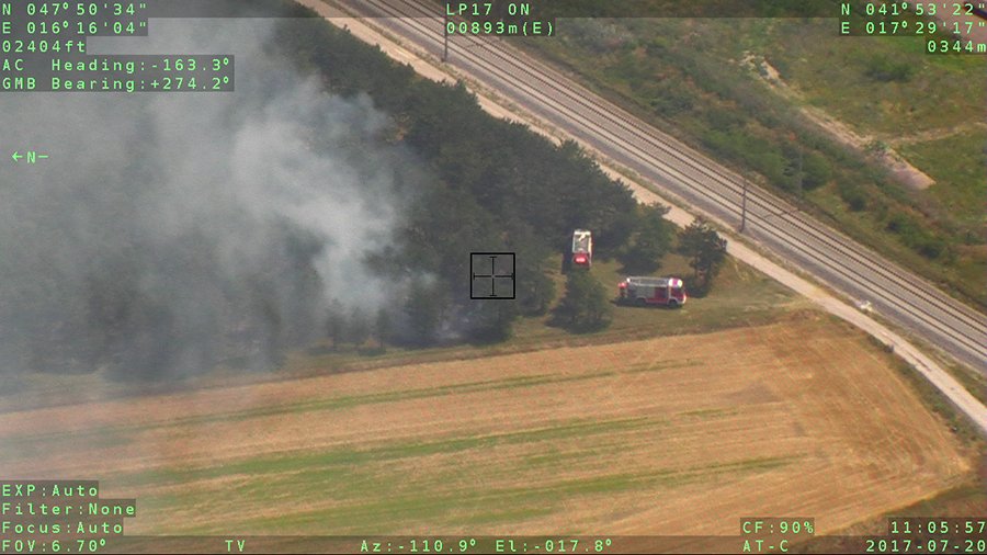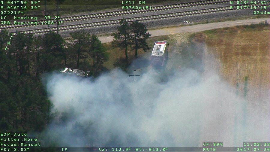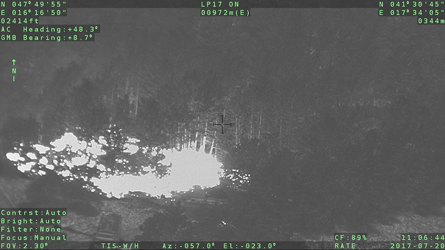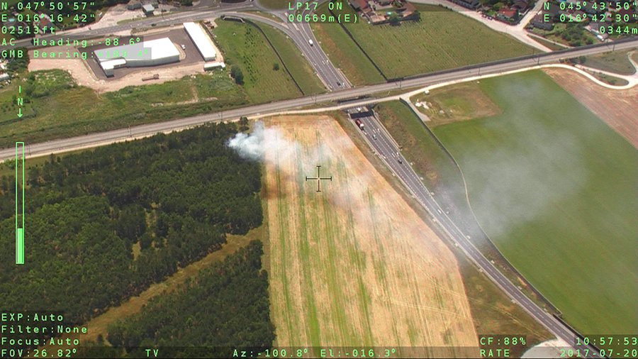 Der Einsatz wurde von einem Testflugzeug der in der Nähe beheimateten Diamond Aircraft gefilmt.