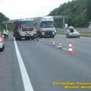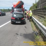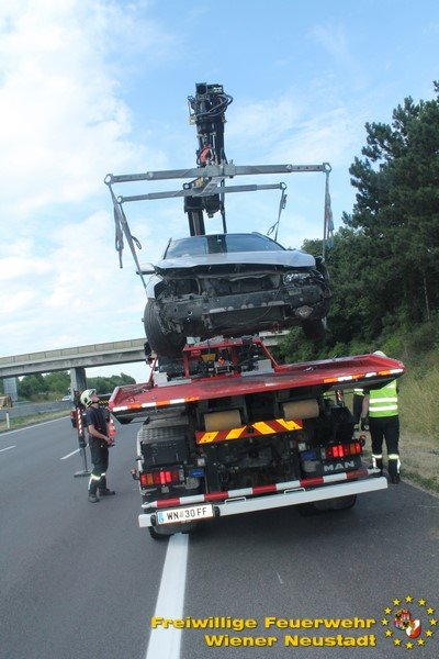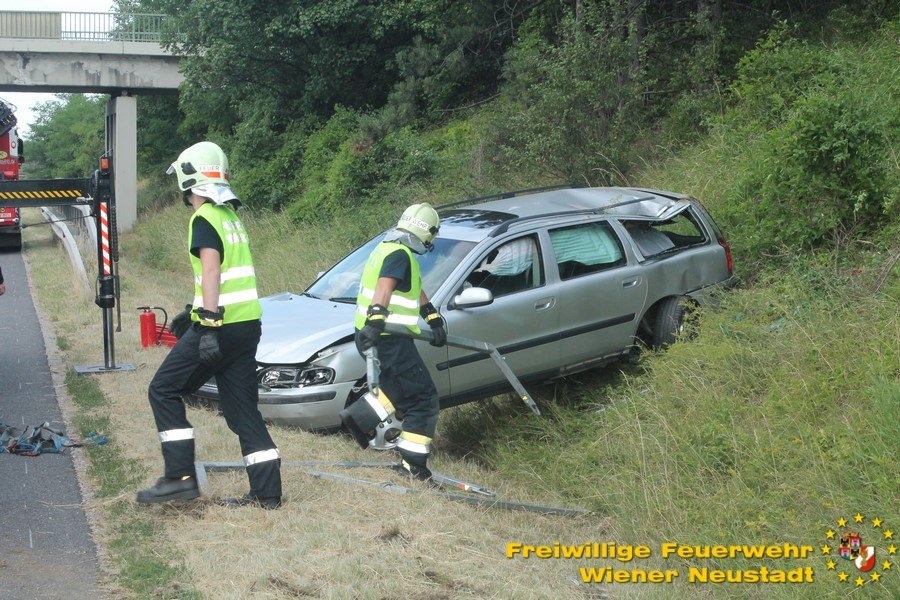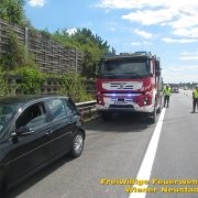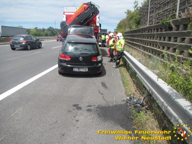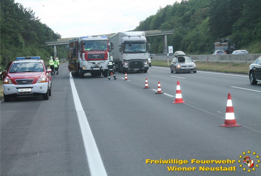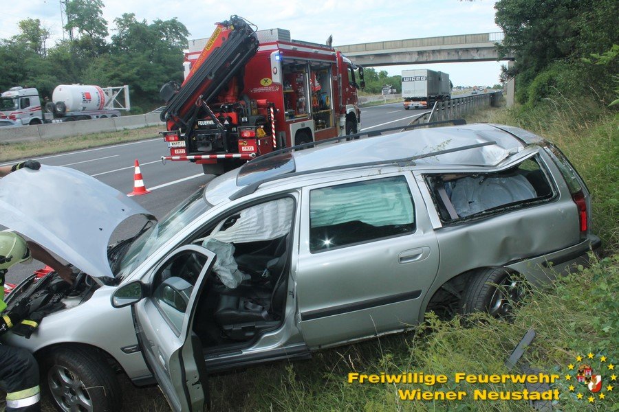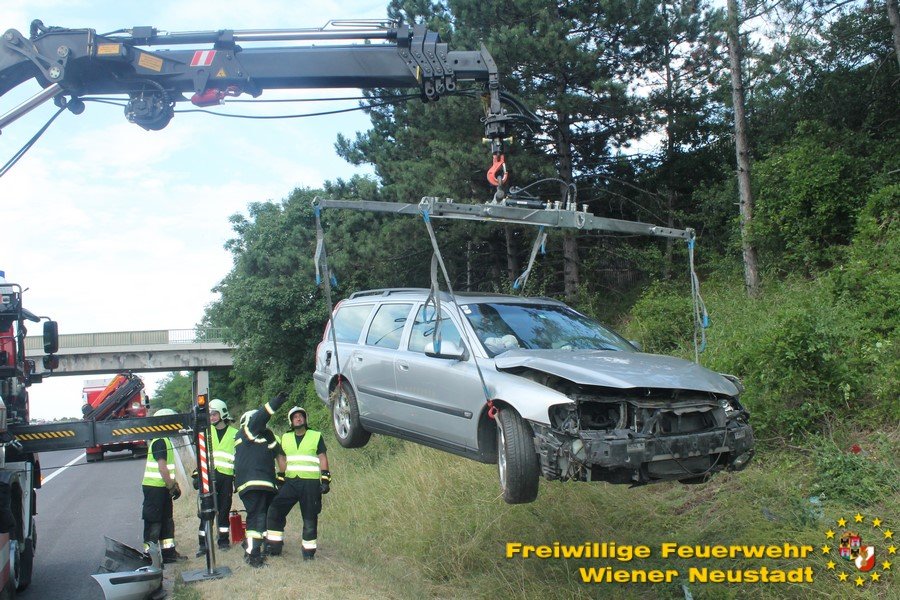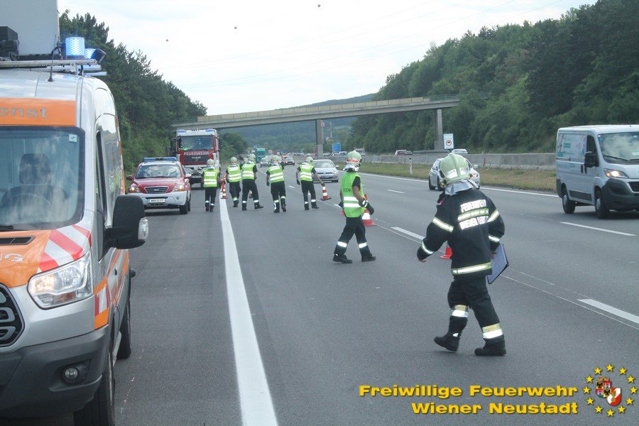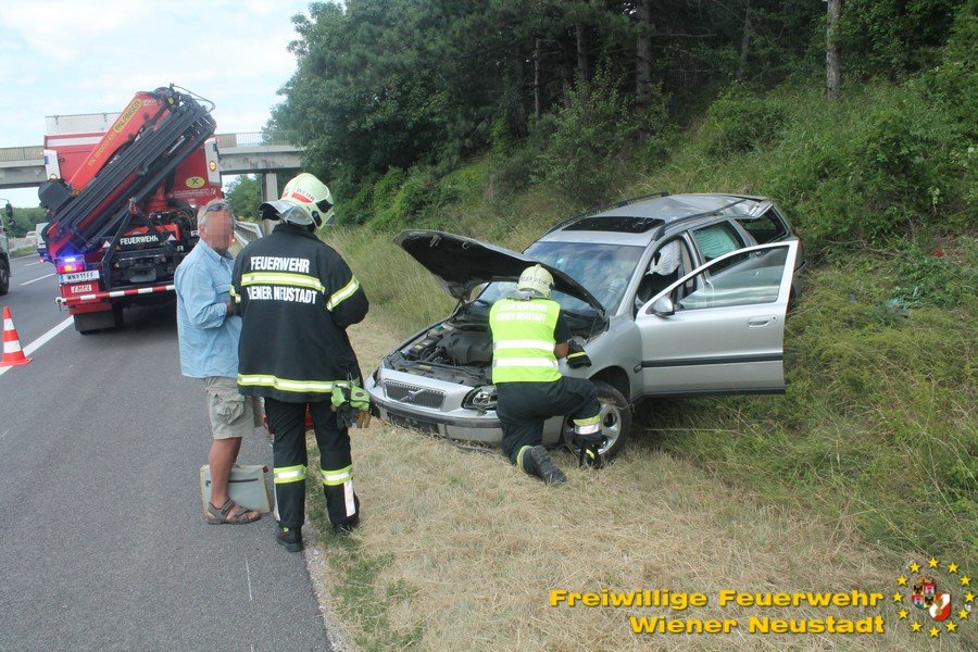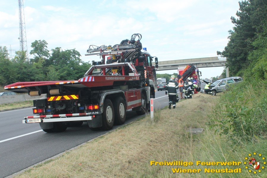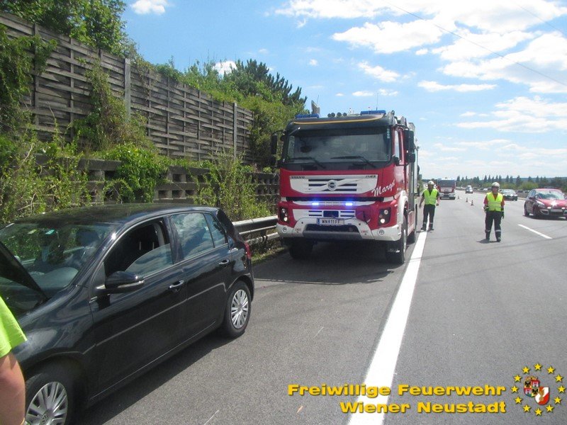 Kurz nach Mittag kam es vor der Abfahrt Leobersdorf zu einem Auffahrunfall. Ein VW blieb daraufhin fahruntüchtig am Pannenstreifen liegen. Eine Person wurde vom Rettungsdienst versorgt. Am Nachmittag kam ein Volvo- Lenker bei einer Überführungsfahrt von der Straße ab. Durch den Aufprall im Straßengraben überschlug sich das Fahrzeug und verkeilte sich im Grünstreifen. Das Fahrzeug musste mit dem Kran geborgen werden. Der Lenker blieb unverletzt. Beide Autos wurden von der Feuerwehr von der Autobahn geschleppt.