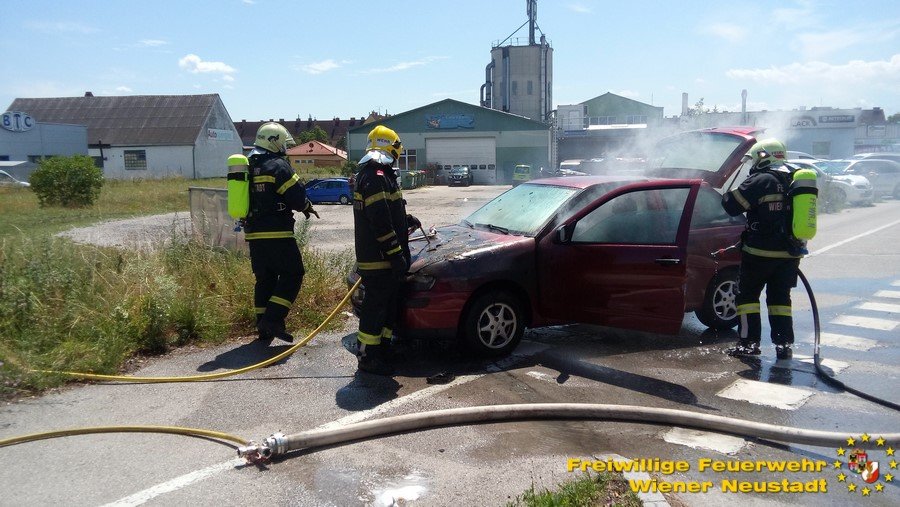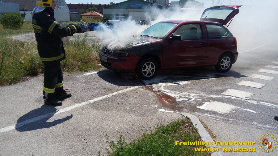 Zu einem Fahrzeugbrand rückte die Feuerwehr Wiener Neustadt am gestrigen Freitag, 22.07,.aus. Am Flugfeldgürtel stand ein Pkw in Brand. Beim Eintreffen der Feuerwehr breiteten sich die Flammen gerade in den Fahrgastraum aus. Das Feuer wurde mittels Löschlanze gelöscht. Mit einem Hochdruckrohr wurden Nachlöscharbeiten duchgeführt. Es entstand Totalschaden. Verletzt wurde niemand.