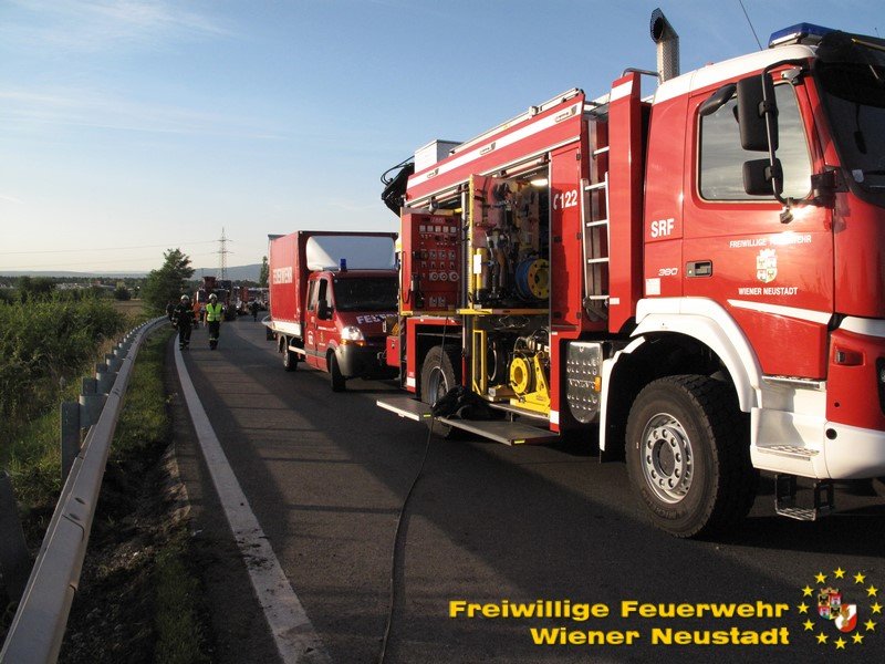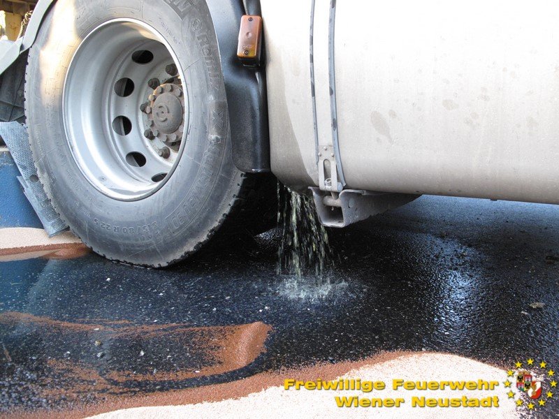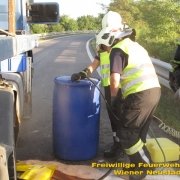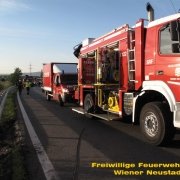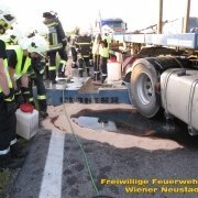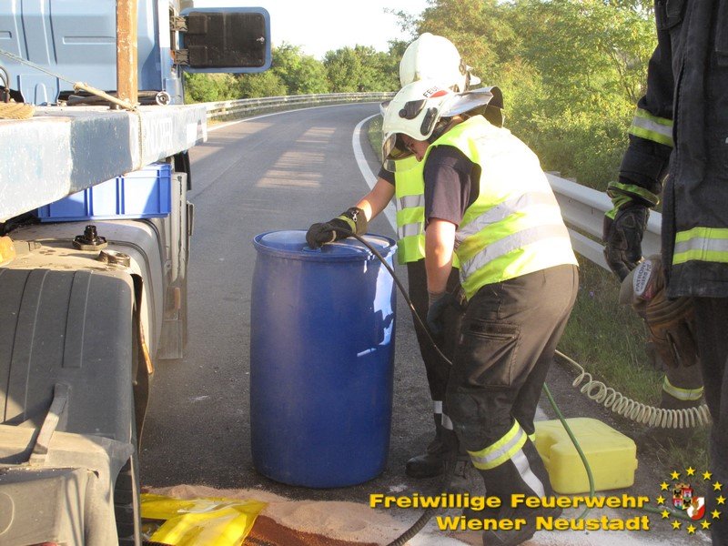 Am Donnerstag, 03.08., rückte die Feuerwehr Wiener Neustadt zur Unterstützung der Feuerwehr Wöllersdorf aus. Auf der Autobahnauffahrt Wöllersdorf verlor ein Sattelzug ein 11- Tonnen Krangewicht und riss sich dabei den Dieseltank auf. Die Feuerwehr Wiener Neustadt unterstützte beim Umpumpen des Kraftstoffes und führte mit dem schweren Kranfahrzeug die Bergung des Gewichtes durch. Den Abtransport des Zugfahrzeuges übernahm ein Privatunternehmen. Nach der Bergung wurde die Einsatzstelle an die örtlich zuständige FF Wöllersdorf übergeben.