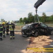 Die zweite Stelle bildeten zwei Fahrzeuge am Beginn der Unfallstelle. Hier wurde ein völlig deformierter Renault mit dem schweren Rüstfahrzeug zur Seite gestellt und in weiterer Folge von dem nachalarmierten Last 4 mit Ladekran und Abschleppmulde auf den Rastplatz verbracht. Das zweite Fahrzeug wurde überprüft. Da keine Betriebsmittel ausliefen und ein privates Abschleppunternehmen bereits angefordert wurde, war hier seitens der Feuerwehr keine Intervention nötig.