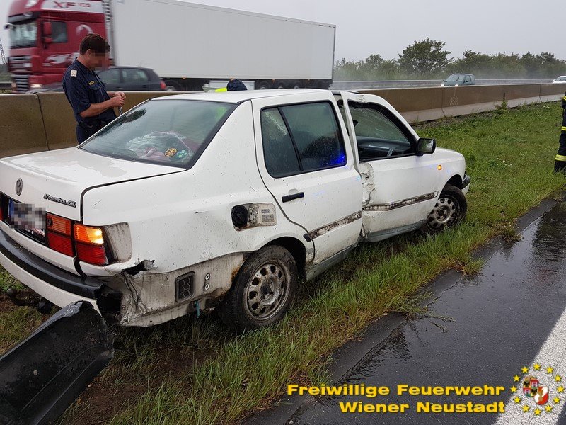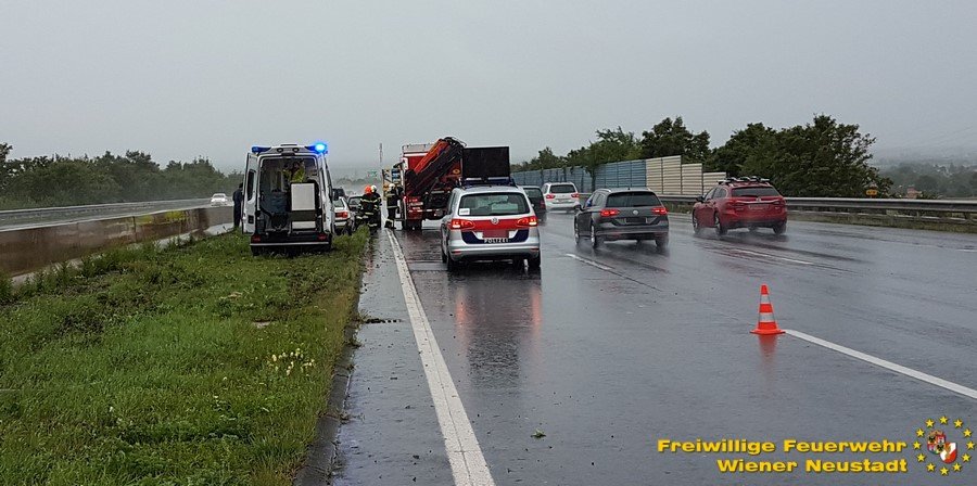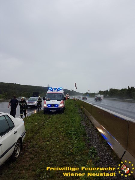 Zu einem Verkehrsunfall auf die Südautobahn rückte die Feuerwehr Wiener Neustadt Samstag, 19.08., Nachmittag aus. Ein Fahrzeug musste geborgen und eine Person vom Rettungsdienst versorgt werden. Das Unfallfahrzeug wurde von der Autobahn geschleppt und auf einem nahen Rastplatz gesichert abgestellt.