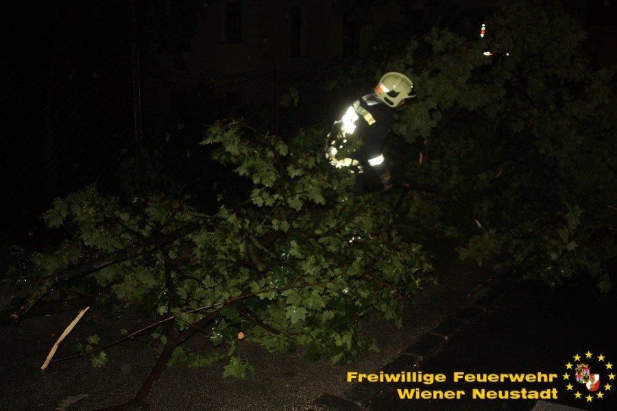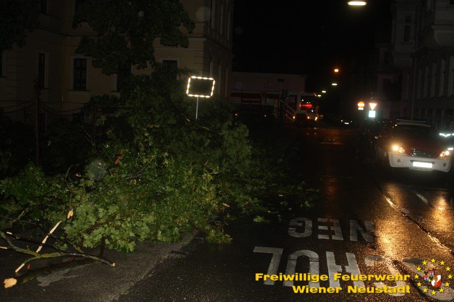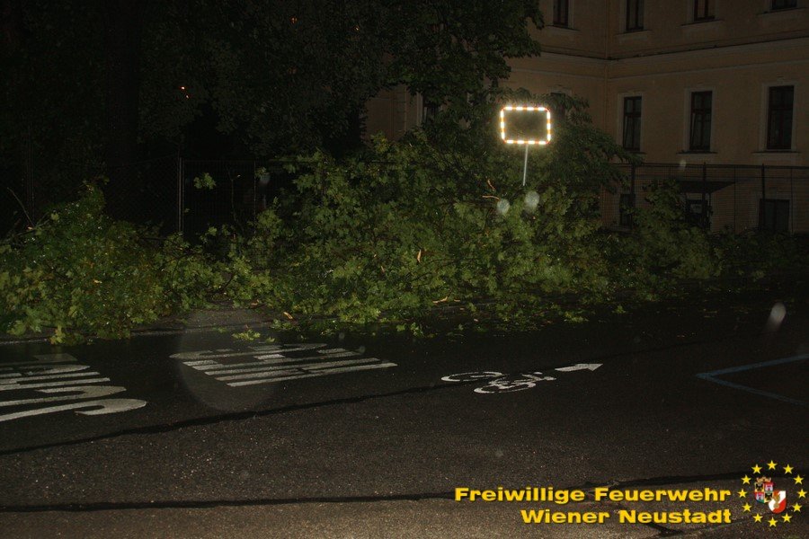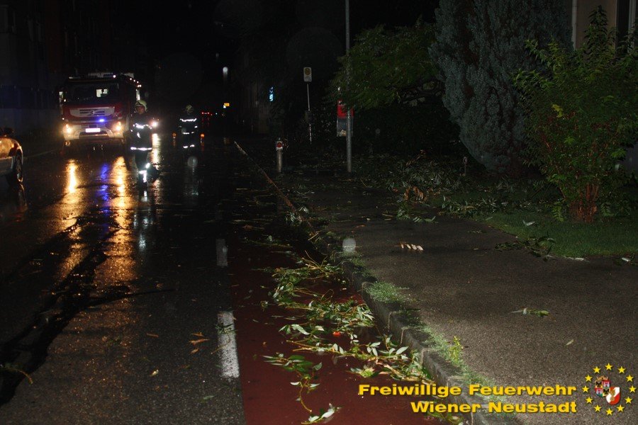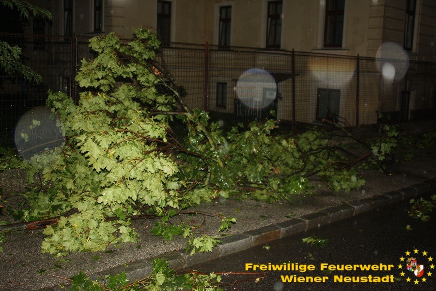 Das Gewitter, welches heute Nacht über Ostösterreich gezogen ist, hat auch in Wiener Neustadt Spuren hinterlassen. In den letzten 3 Stunden musste allein die Freiwillige Feuerwehr Wiener Neustadt zu 30 (!) wetterbedingten Einsätzen ausrücken. Die Besetzung der Bezirksalarmzentrale wurde verstärkt, um alle Notrufe und Einsätze im Bezirk abzuarbeiten.