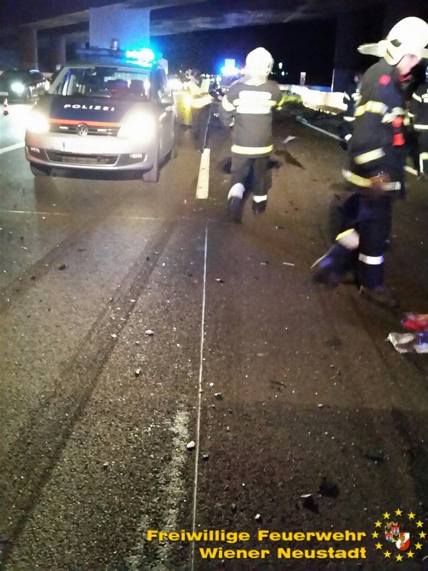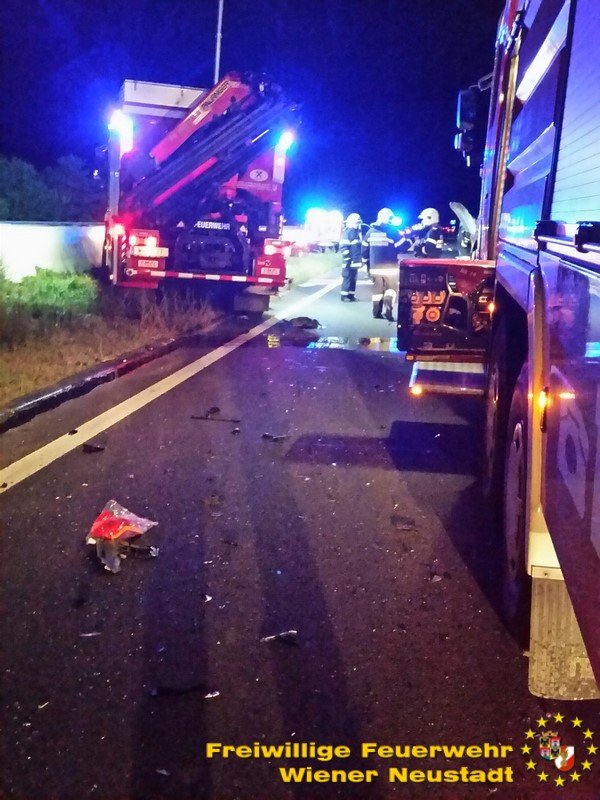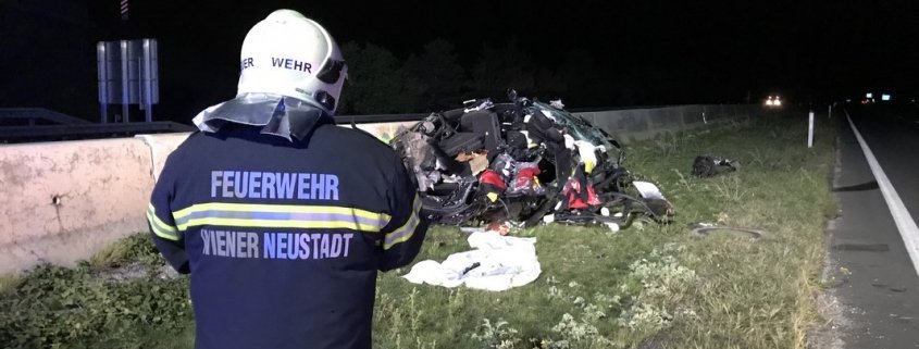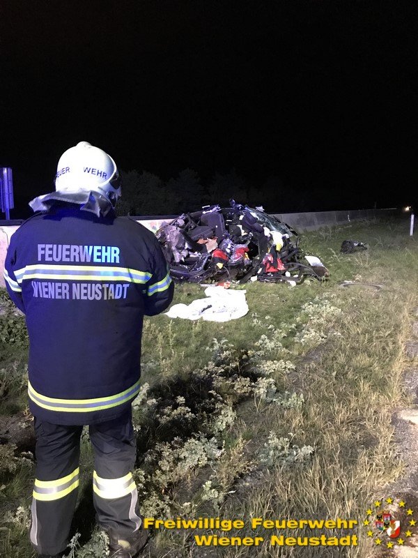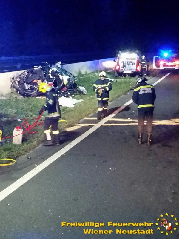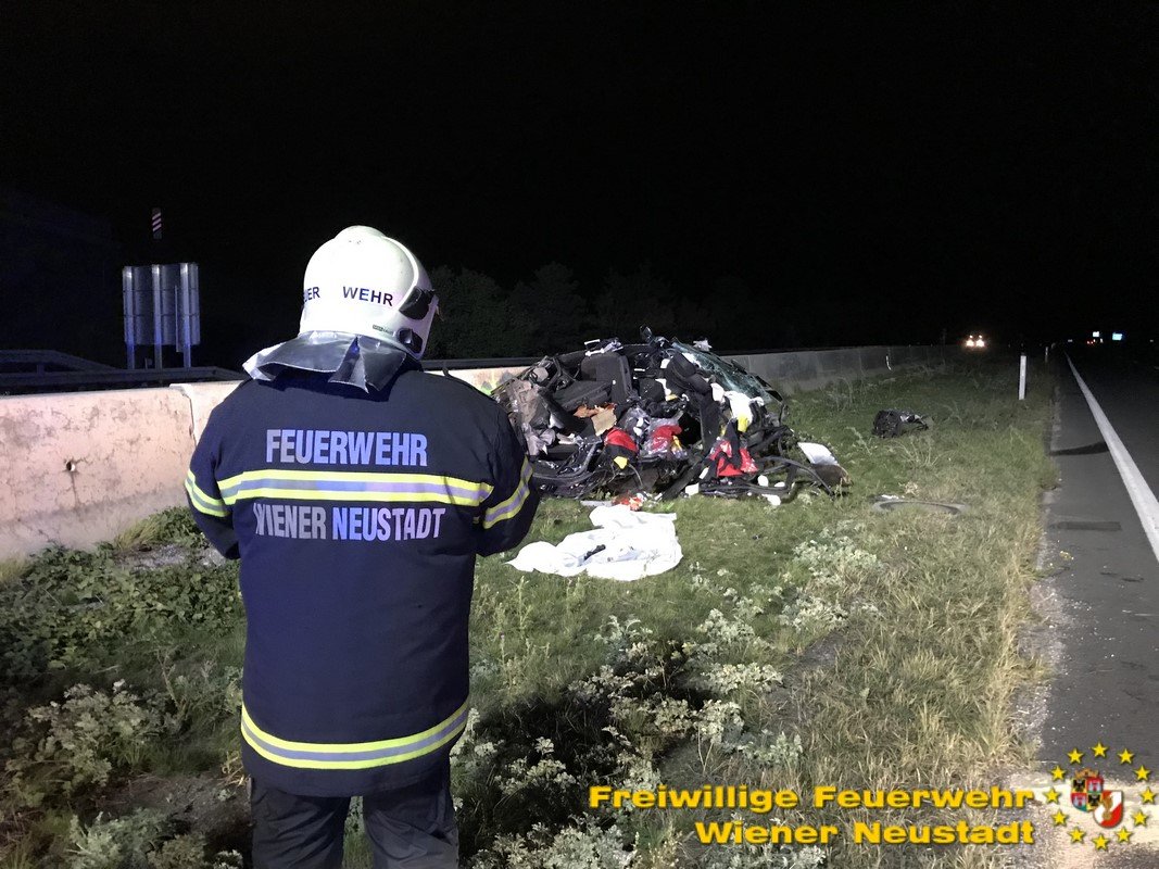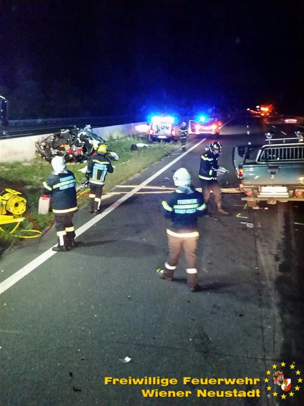 Zu einem schweren Verkehrsunfall mit einer eingeklemmten Person wurde die Freiwillige Feuerwehr Wiener Neustadt in der Nacht zum Freitag auf die A2 Südautobahn alarmiert. Ein Pkw-Lenker verlor bei dem Unfall sein Leben. Ein weiterer wurde vom Rettungsdienst mit Verletzungen unbestimmten Grades in das Landesklinikum Wiener Neustadt gebracht.