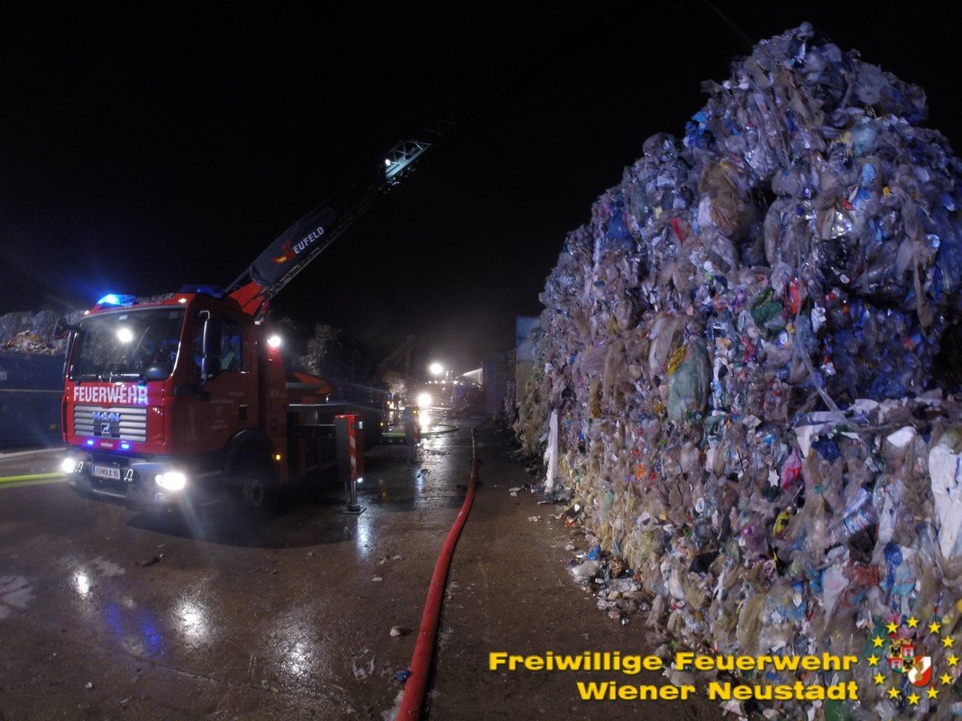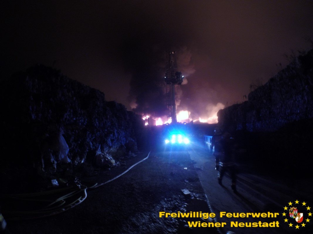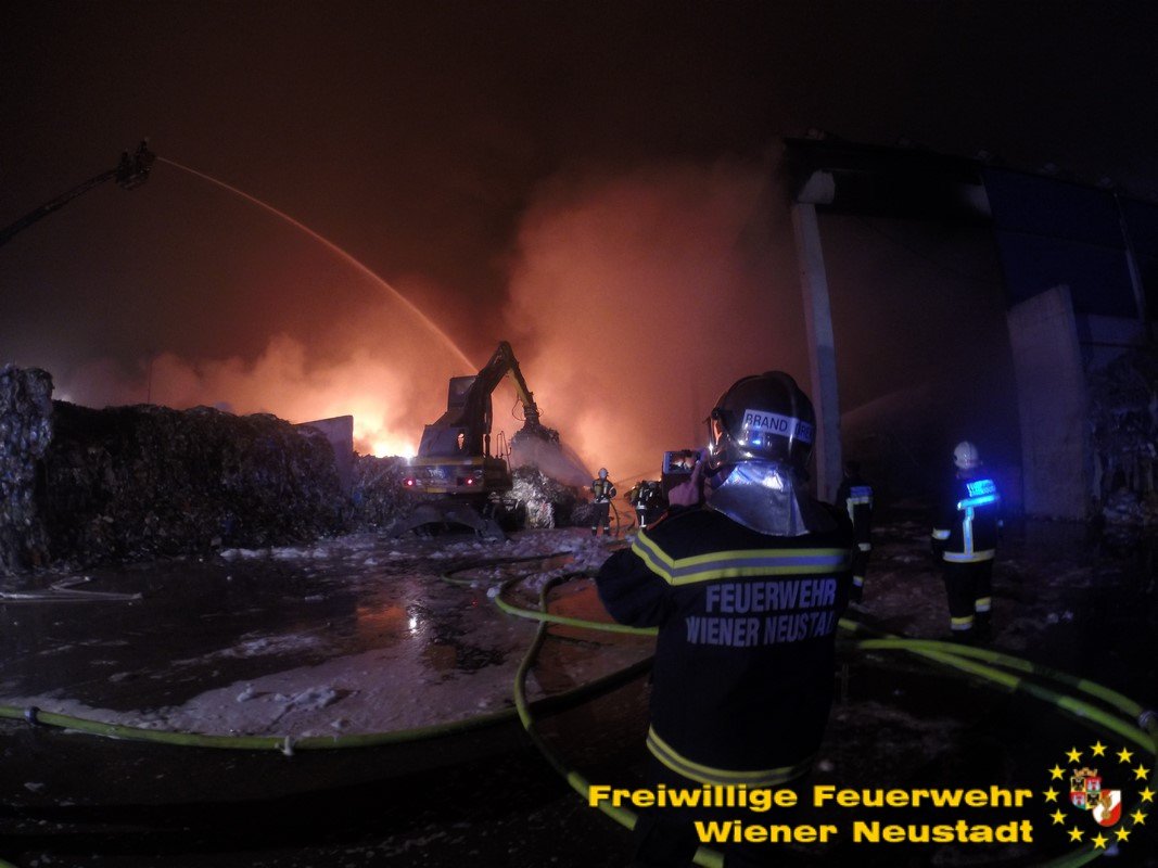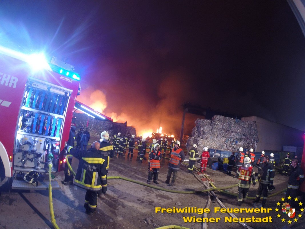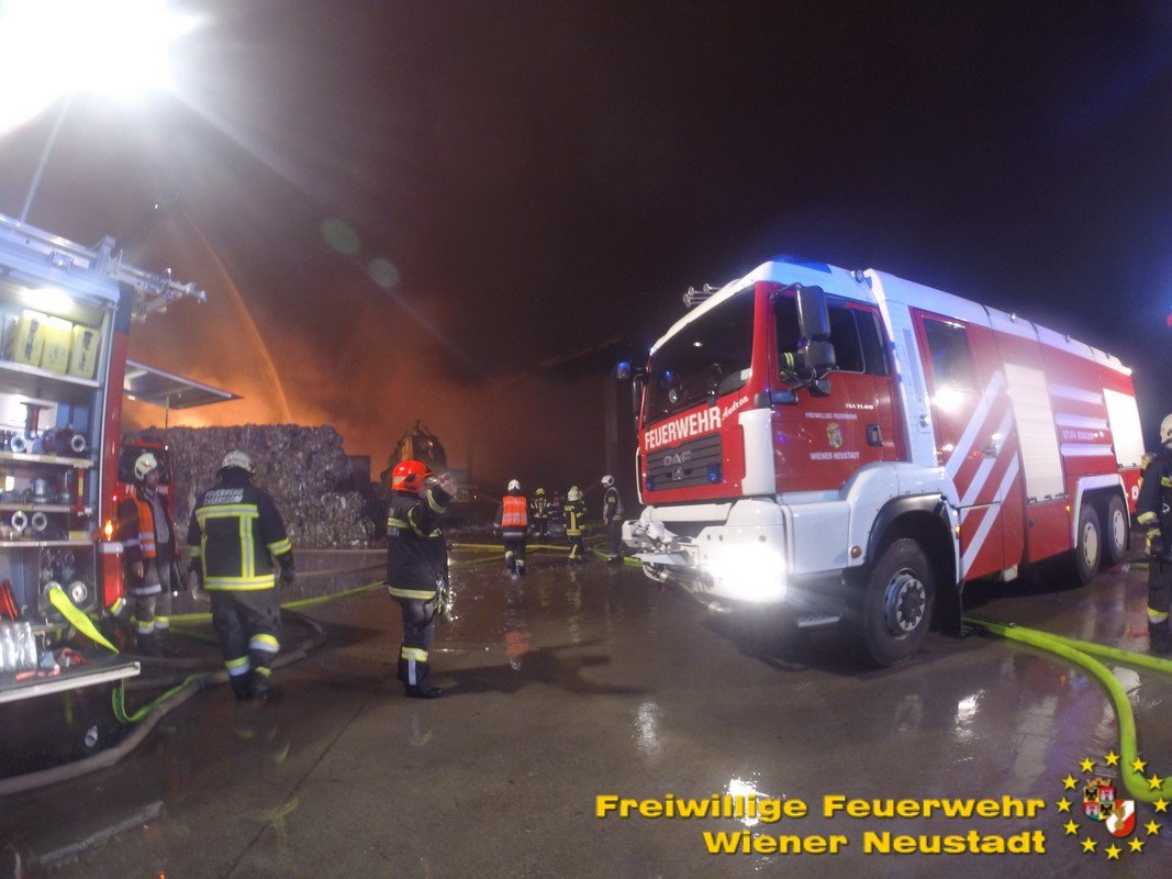 Die Freiwillige Feuerwehr Wiener Neustadt wurde um 00:57 Uhr zur Unterstützung mit einem Großtanklöschfahrzeug alarmiert. Die Einsatzleitung forderte nach dem Eintreffen der ersten Kräfte aus Wiener Neustadt außerdem um kurz nach 02:00 Uhr ein weiteres Großtanklöschfahrzeug sowie ein Wechselladefahrzeug mit dem Schlauchcontainer und ein Wechselladefahrzeug mit dem Schaumcontainer an.