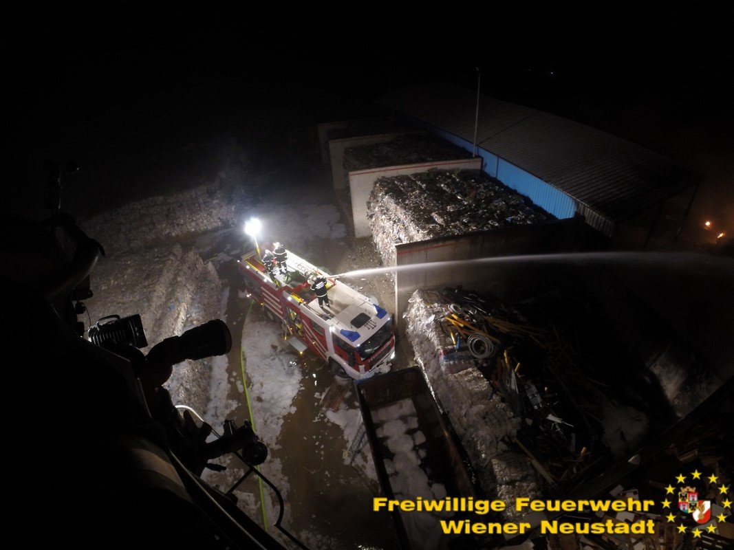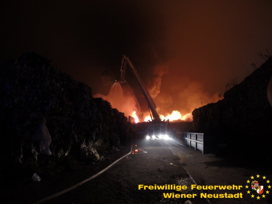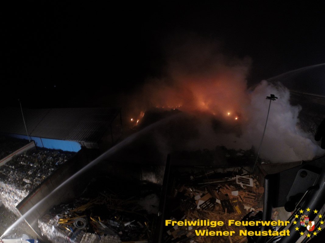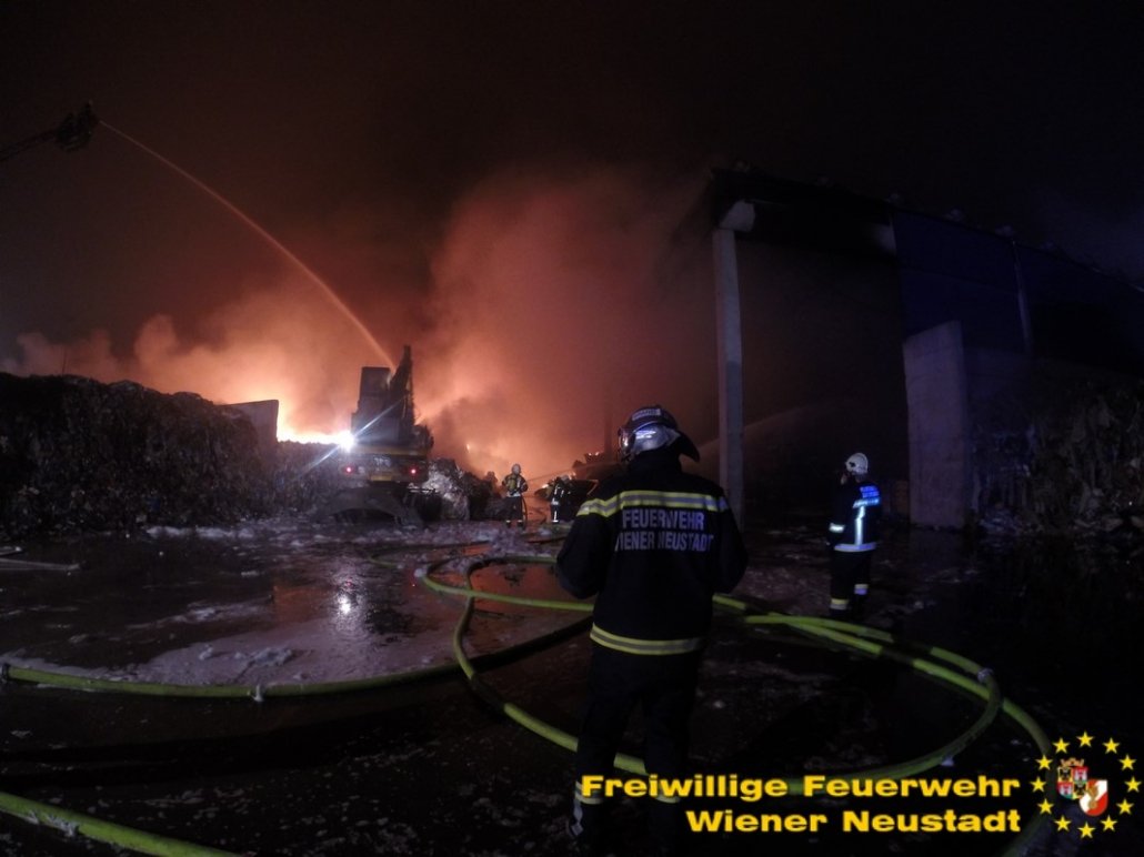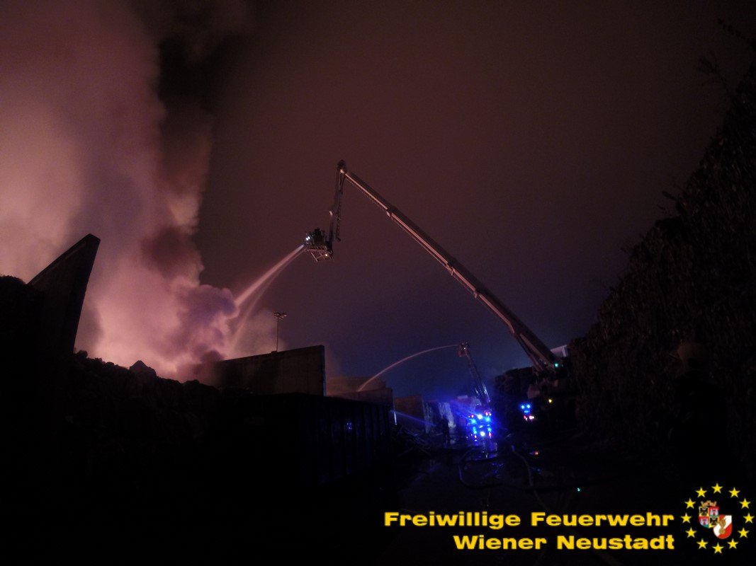 Die Freiwillige Feuerwehr Wiener Neustadt wurde um 00:57 Uhr zur Unterstützung mit einem Großtanklöschfahrzeug alarmiert. Die Einsatzleitung forderte nach dem Eintreffen der ersten Kräfte aus Wiener Neustadt außerdem um kurz nach 02:00 Uhr ein weiteres Großtanklöschfahrzeug sowie ein Wechselladefahrzeug mit dem Schlauchcontainer und ein Wechselladefahrzeug mit dem Schaumcontainer an.