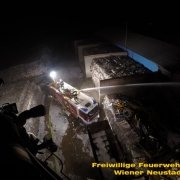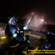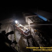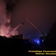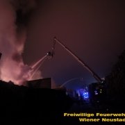 Die Feuerwehr Wiener Neustadt unterstützte die Löschmaßnahmen mit dem Wasserwerfer des Tank 4 und versorgte die Hubrettungsbühne der Stadtfeuerwehr Eisenstadt mit Wasser-Schaum-Gemisch.