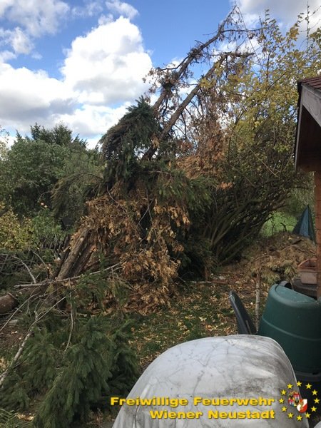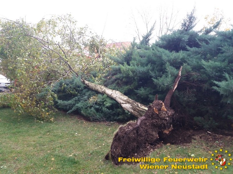 Der Sturm, der heute Sonntag, 29.10., über Ostösterreich zog, machte auch vor Wiener Neustadt nicht halt. Glücklicherweise erwischte es die Stadt nicht so schlimm wie andere Orte. Bis jetzt (Stand 16:00 Uhr) musste die Feuerwehr Wiener Neustadt zu 7 sturmbedingten Einsätzen ausrücken.