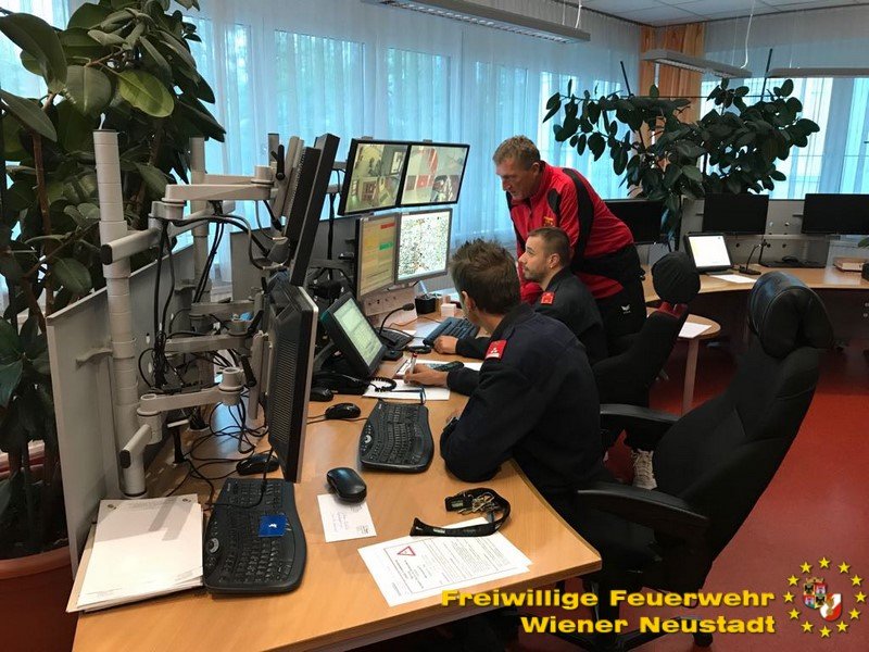 Auch die Bezirksalarm- und Warnzentrale Wiener Neustadt war heute für mehrere Stunden verstärkt besetzt, um die zahlreichen Einsätze des Bezirks Wiener Neustadt Land abzuwickeln und die zuständigen Feuerwehren zu alarmieren.