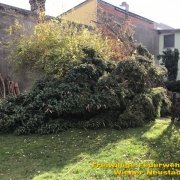 Kurz nach 13:00 Uhr, folgte der nächste Alarm. In der Sandgasse drohte ein angeknackster Baum auf ein Wohnhaus zu stürzen. Der Baum wurde gefällt und abseits des Gebäudes zu Fall gebracht.