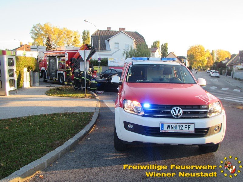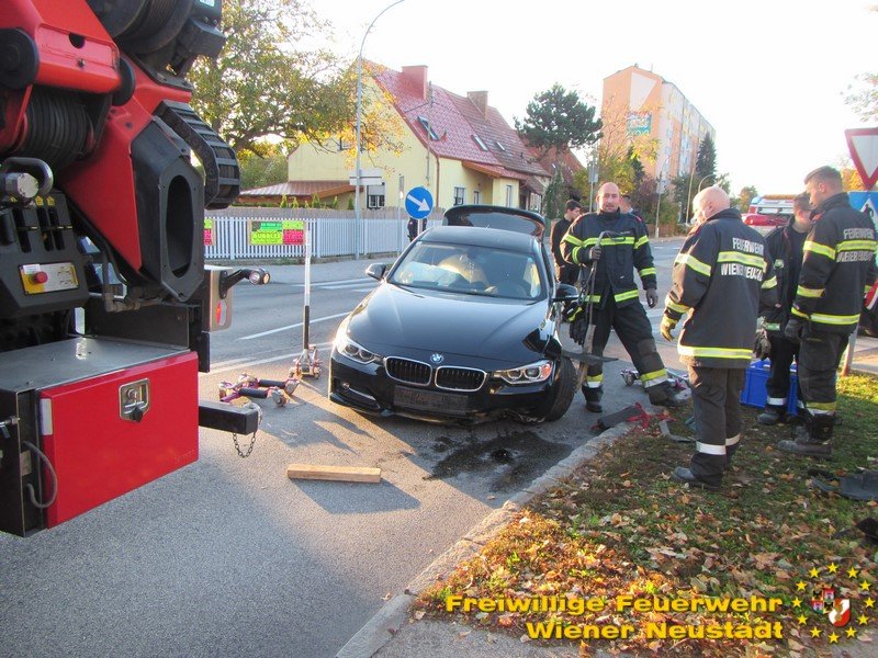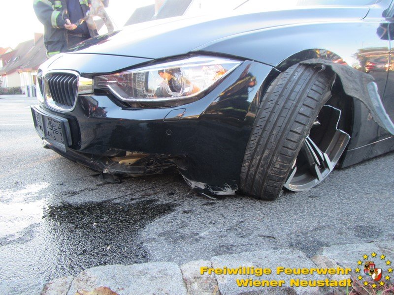 Nicht ausschlafen konnten elf Feuerwehrmänner in Wiener Neustadt am heutigen Sonntag, 15.10. Kurz nach 07:00 Uhr kam es im Ungarviertel zu einem Unfall. Ein BMW blieb im Kreisverkehrsbereich der Nestroystraße mit beschädigter Vorderachse liegen. Die Feuerwehr rückte aus und musste das Fahrzeug mit dem schweren Rüstfahrzeug von der Straße schleppen. Verletzt wurde niemand.