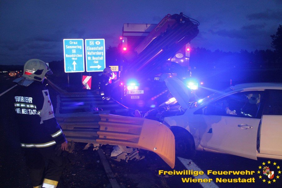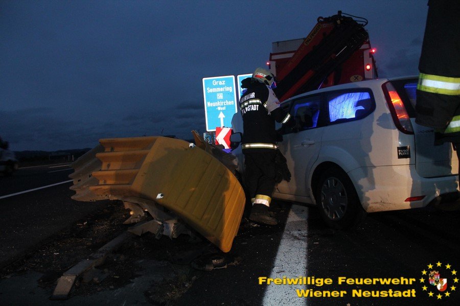 Eine Komplettsperre der Abfahrt zur S4 führte heute Montag, 23.10., im Frühverkehr zu Verzögerungen auf der Südautobahn. Ein 21- jähriger Lenker aus dem Bezirk Wiener Neustadt, welcher gerade aus dem Nachtdienst nach Hause fuhr, krachte frontal in einen Aufpralldämpfer bei der Autobahnabfahrt zur S4. Der Mann wurde glücklicherweise nicht verletzt, an dem Ford entstand jedoch Totalschaden. Die Feuerwehr führte die Fahrzeugbergung durch.