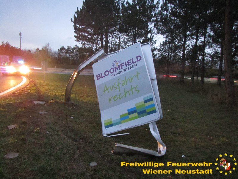 Die Autobahnabfahrt Leobersdorf war wieder einmal Schauplatz eines Verkehrsunfalles. Ein Lenker aus dem Bezirk Lilienfeld kam in der Kurve von der Abfahrt ab und fuhr gerade aus in den Straßengraben. Dabei erwischte das Fahrzeug ein Geisterfahrer-Warnzeichen und beschädigte es schwer. Der Lenker wurde leicht verletzt und vor Ort vom Rettungsdienst versorgt.