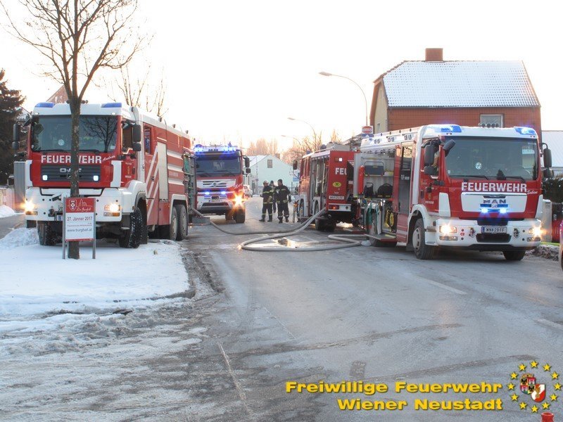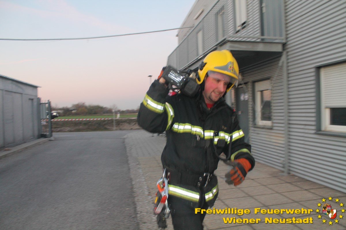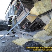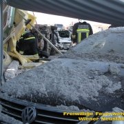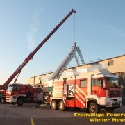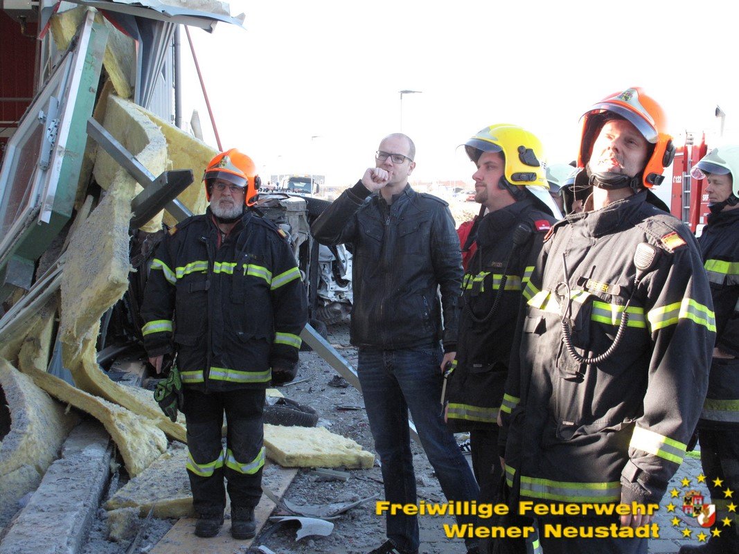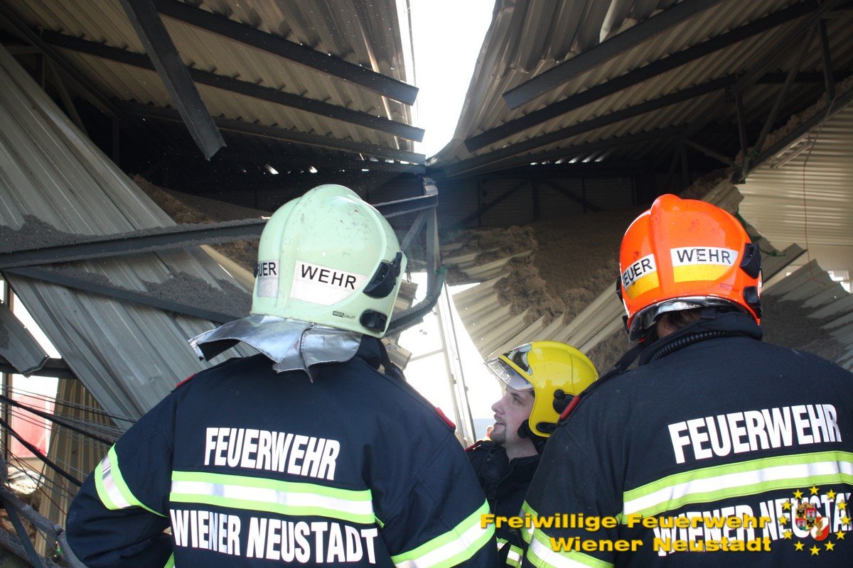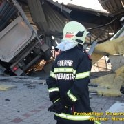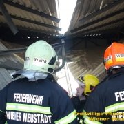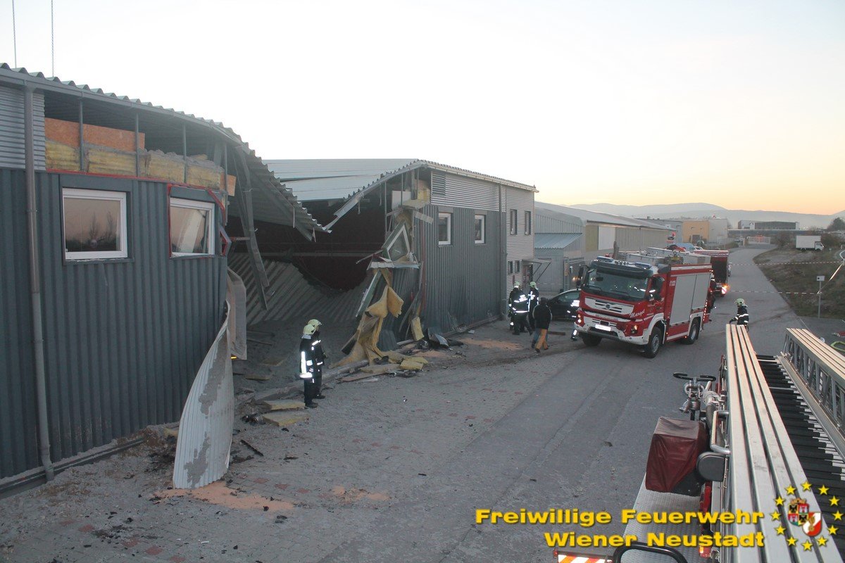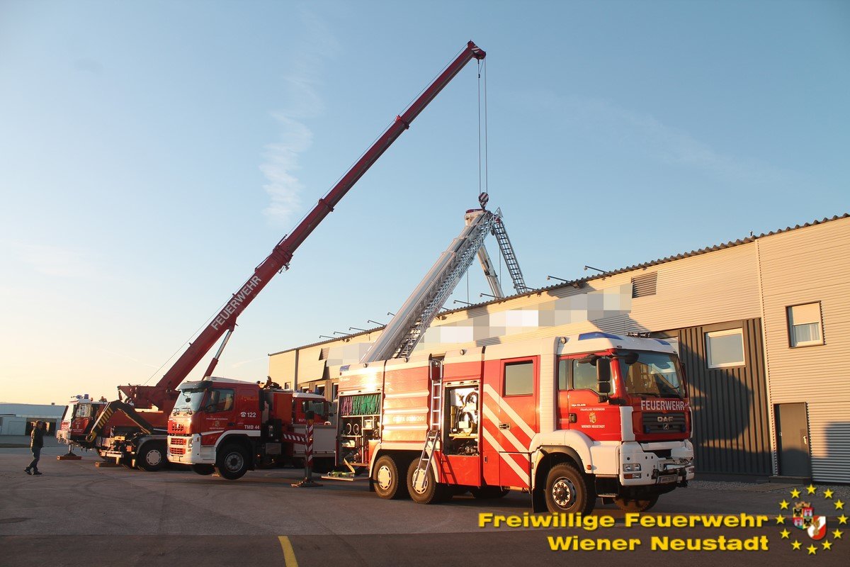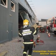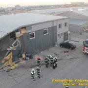 Gegen zwölf Uhr mittags traf in der Bezirksalarm- und -warnzentrale ein Notruf ein, welcher folgende Lage darstellte: Ein Lkw ist in eine Halle gefahren und hat dabei mehrere Fahrzeuge gerammt. Die Halle drohe einzustürzen. Ein Fahrzeug der Feuerwehr Wiener Neustadt machte sich zur Lageerkundung auf den Weg. Es folgte ein Großeinsatz der Feuerwehr.