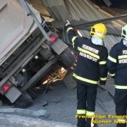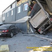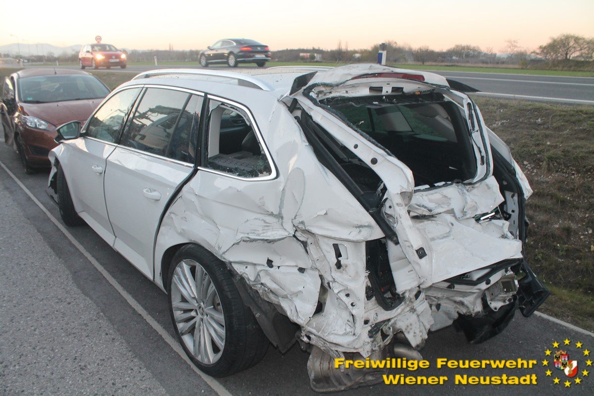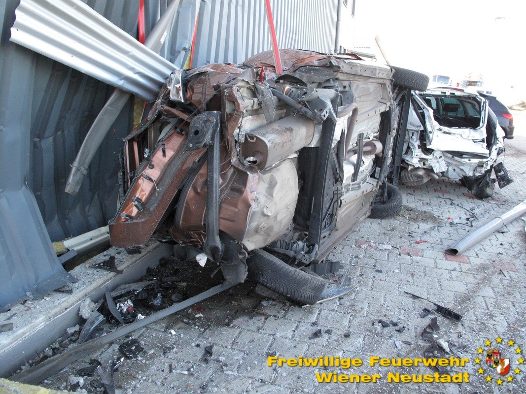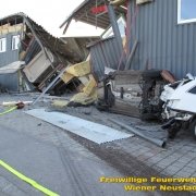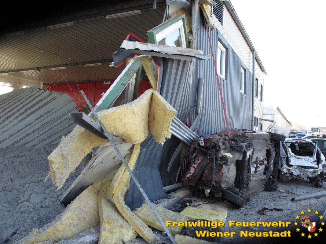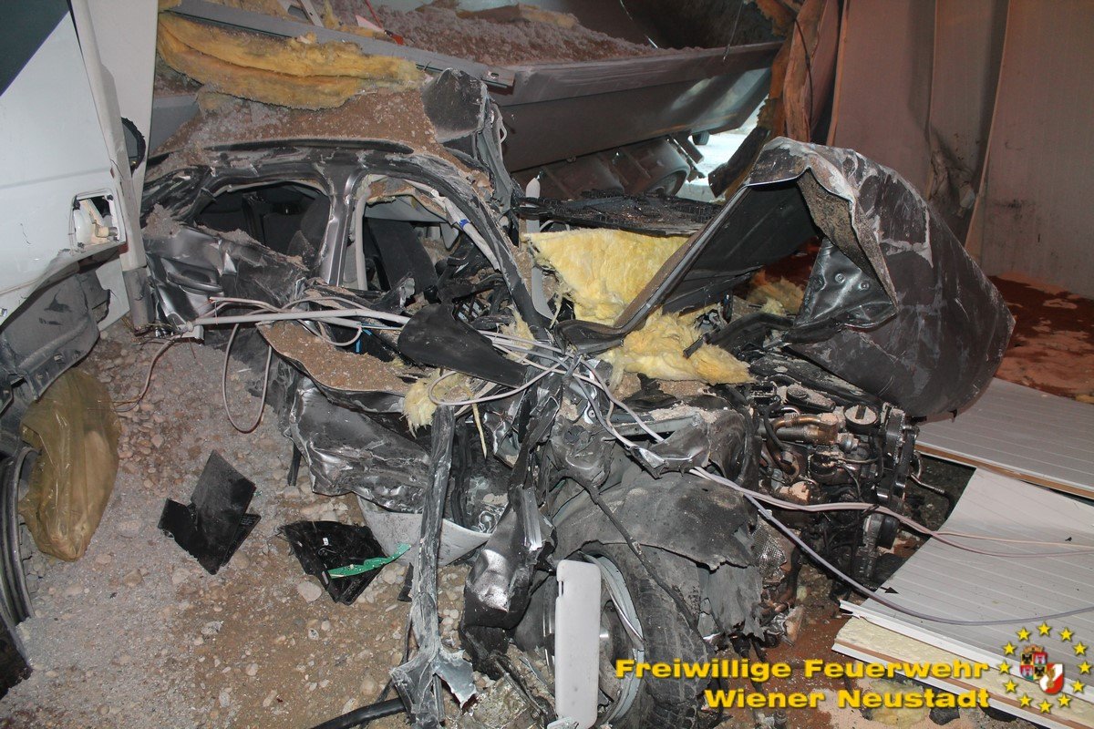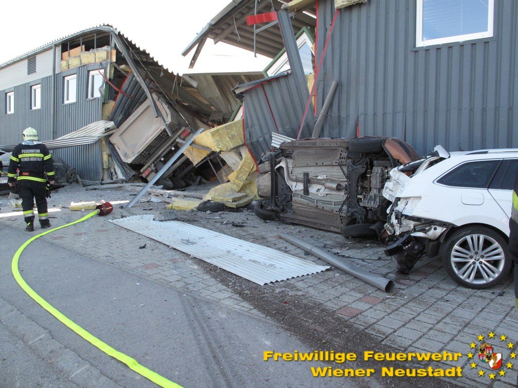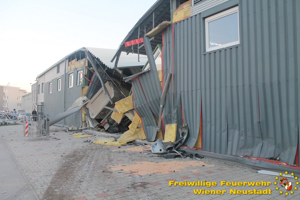 Der mit Schotter beladene Sattelzug kam aus bislang ungeklärter Ursache von der Straße ab und fuhr über eine Böschung in eine Reihe parkende Pkw und in weiterer Folge in eine Halle am Rande des Flugfeldes Ost in Wiener Neustadt. Wie durch ein Wunder konnte der Lkw-Fahrer durch Firmenmitarbeiter unverletzt aus dem Zugfahrzeug befreit werden.
