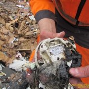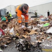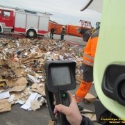 Der Brand im Bereich der Restmüllpresse wurde ebenfalls von einem Mitarbeiter rasch entdeckt. Dort wurde ebenfalls sofort reagiert: der Müll wurde durch ausleeren aus der Presse entfernt und mit einem Rohr aus einem weiteren Wandhydranten wurde dieser Brand rasch abgelöscht. Die Feuerwehr führte hier die Kontrolle mit der Wärmebildkamera durch.