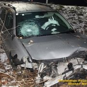 Die Beamten hielten Nachschau und entdeckten nach kurzer Zeit einen schwer beschädigten Pkw in einem bewaldeten Grünstreifen.