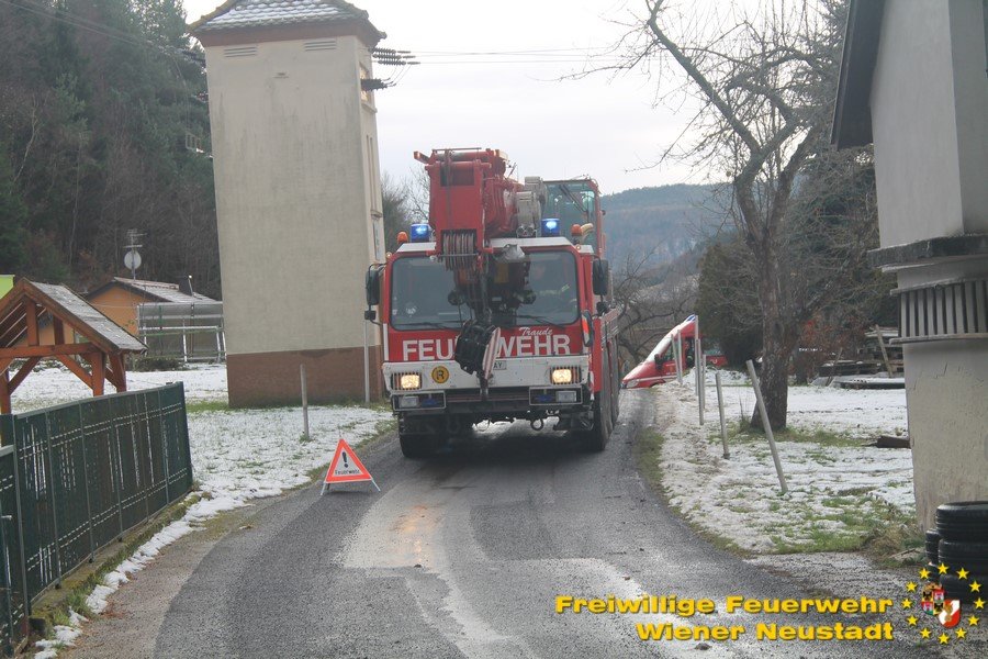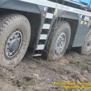 Die Freiwillige Feuerwehr Schwarzenbach alarmierte gegen 13.30 Uhr das schwere Kranfahrzeug der FF Wiener Neustadt nach. Im Gemeindegebiet blieb ein Autokran in nassem Untergrund stecken. Zur Bergung wurde Unterstützung bei der FF Wiener Neustadt angefordert.