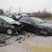 In der Dr. Korengasse stießen zwei Pkw zusammen. Die Feuerwehr band ausgelaufene Flüssigkeiten und stellte die Fahrzeuge zur Seite.