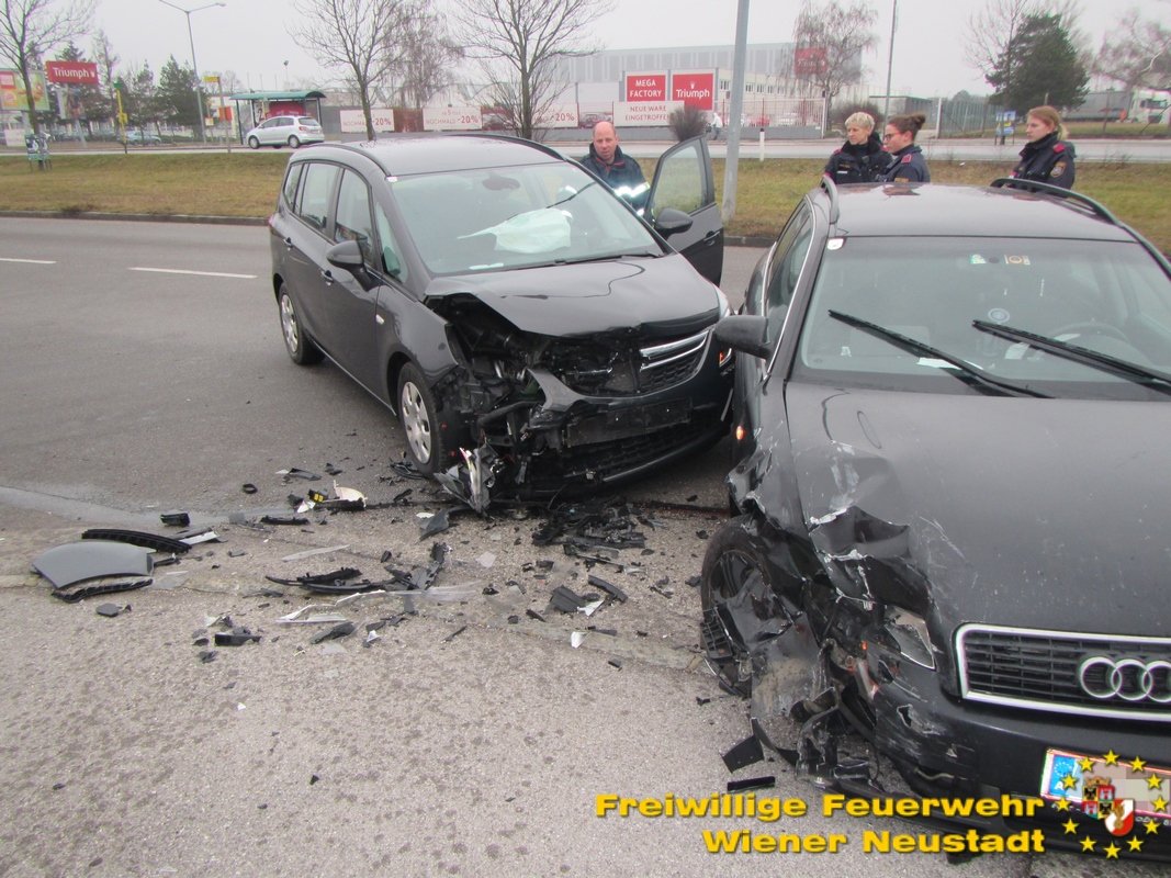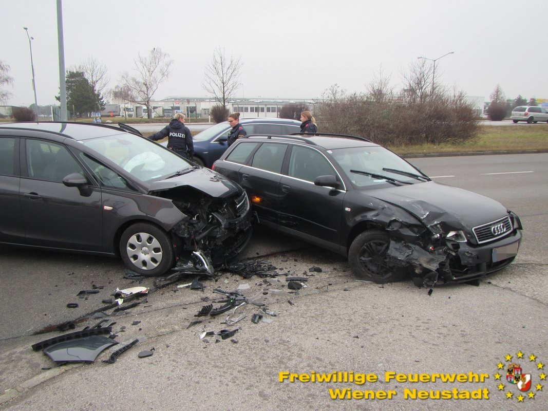Aufgrund der unklaren Örtlichkeit des Einsatzes wurden mehrere Feuerwehren alarmiert. Die zuständige Feuerwehr Wiener Neustadt führte die Fahrzeugbergung durch. Die beiden Unfallfahrzeuge wurden durch die Feuerwehr zum nächstgelegenen gesicherten Parkplatz gebracht.