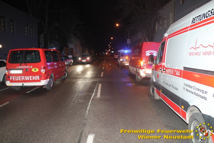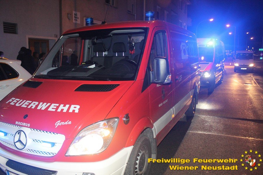 Die Feuerwehr Wiener Neustadt wurde von 144 Notruf Niederösterreich über den CO- Alarm in Kenntnis gesetzt. Kurz darauf rückten mehrere Fahrzeuge zu der Adresse aus.