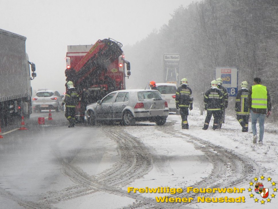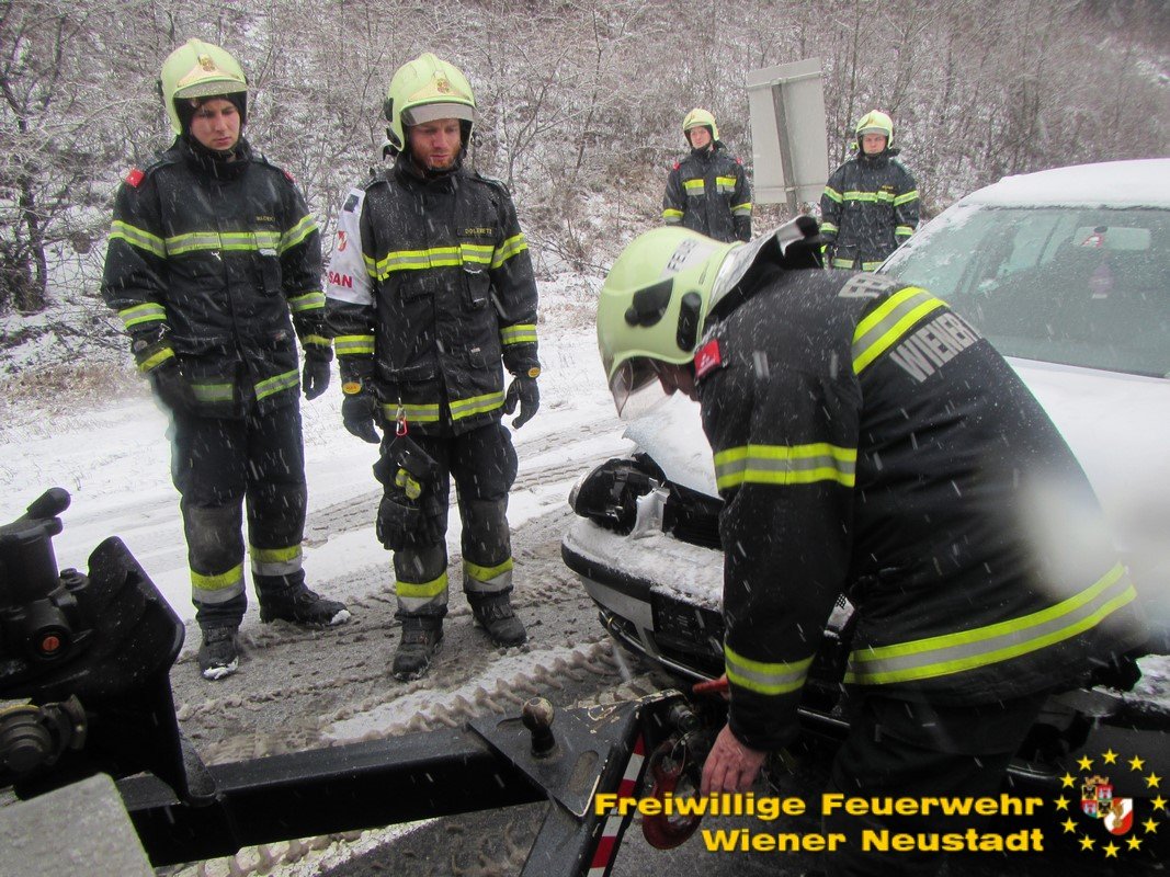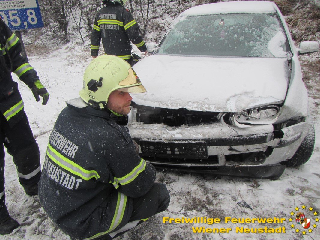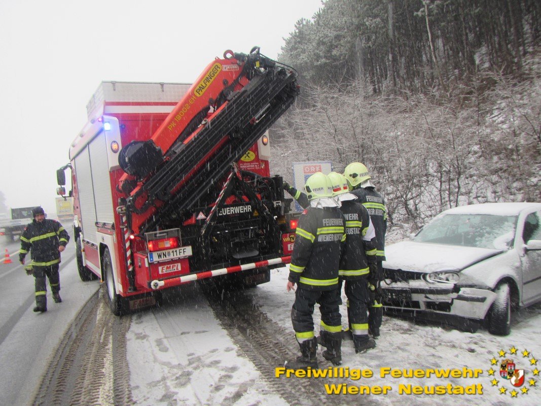 Der Schneefall am Dienstagmorgen sorgte im Frühverkehr für einiges Chaos. Die Feuerwehr Wiener Neustadt wurde auf die Südautobahn gerufen, um einen Pkw aus dem Graben zu ziehen.