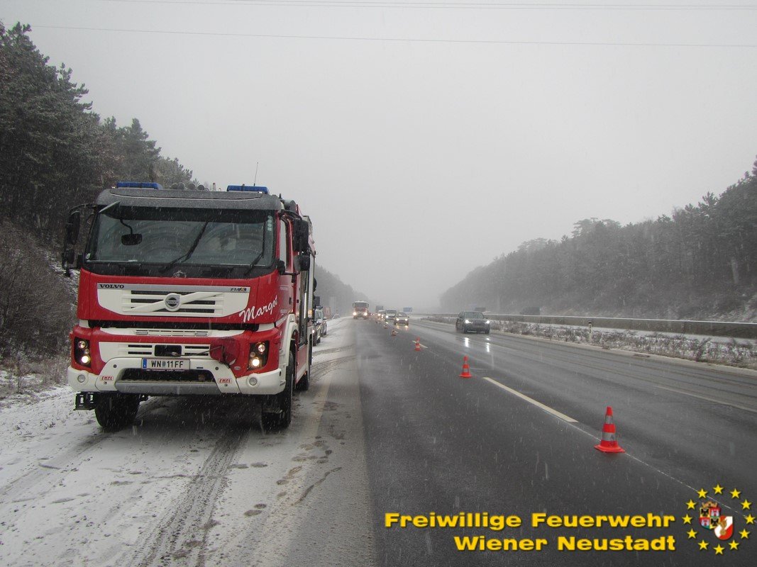 Die Freiwillige Feuerwehr Wiener Neustadt rückte um 08:12 Uhr, nur kurze Zeit nach der Alarmierung zu einer Fahrzeugbergung auf der Südautobahn in Fahrtrichtung Graz aus.