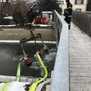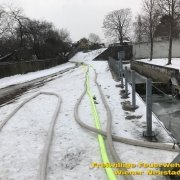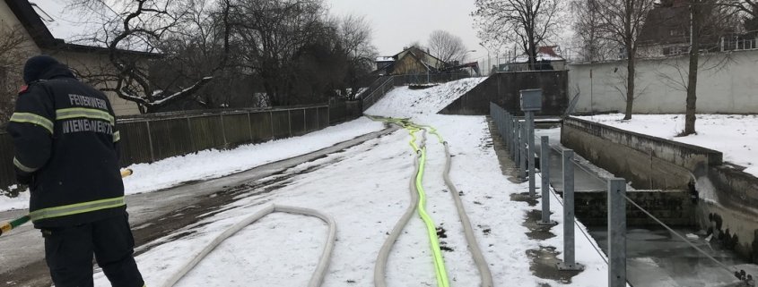 Die mehreren hundert Fische im Wiener Neustädter Kanal können aufgrund des niedrigen Wasserpegels und der hinzukommenden Eisschicht nicht überleben. Deshalb pumpt die Feuerwehr Wiener Neustadt mit mehreren Pumpen Wasser an mehreren Tagen vom Kehrbach in den Wiener Neustädter Kanal.