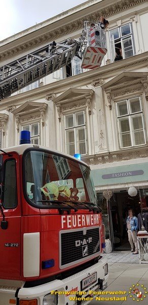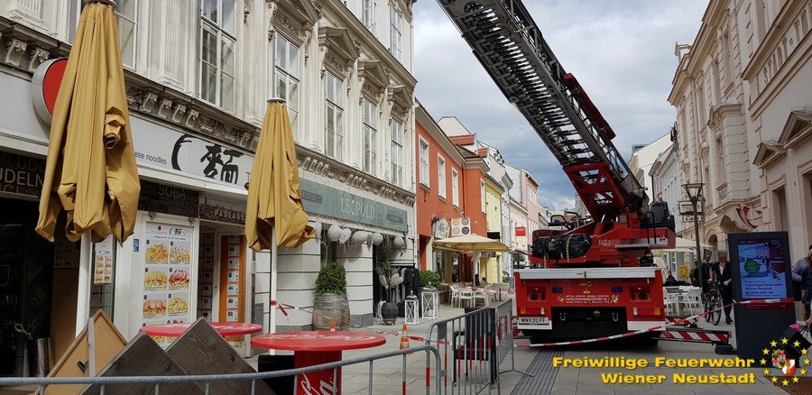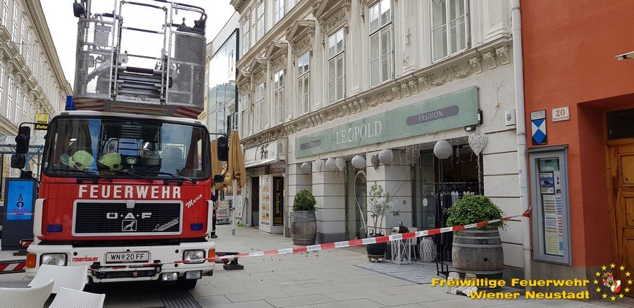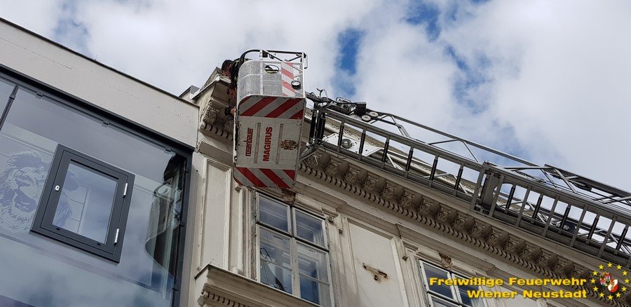 Zu losen Fassadenteilen in der Fußgängerzone von Wiener Neustadt musste die Feuerwehr am Mittwochnachmittag, 16.05., ausrücken. In der Herzog- Leopold- Straße bröckelten Teile der Fassade ab und landeten auf der Straße. Der betroffene Bereich gegenüber des Stadttheaters wurde abgesperrt. Außerdem mussten zwei Geschäftslokale im Gefahrenbereich geschlossen werden. Ein Statiker überprüfte daraufhin die Fassade, während die Feuerwehr die ungesicherten Teile entfernte.
