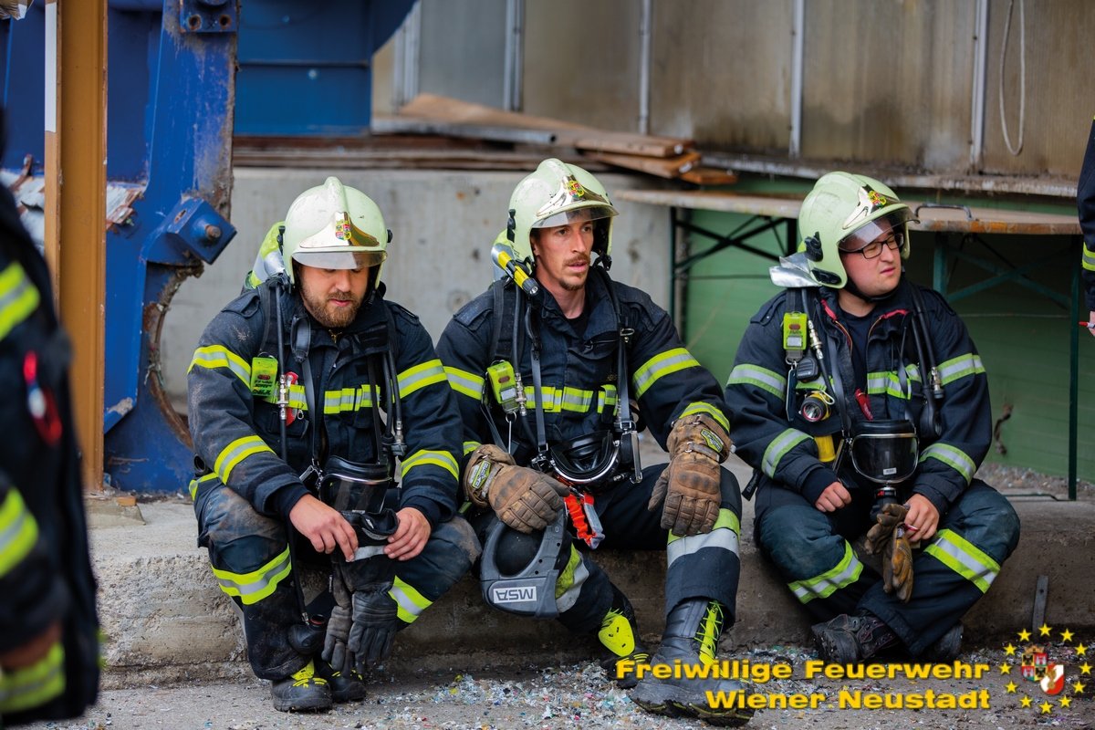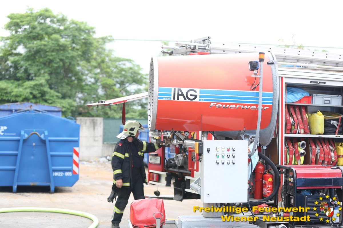 Ein automatischer Brandmelderalarm meldete heute, 7. Juni 2018, um kurz vor viertel zwölf Uhr einen Brand in einem Wiener Neustädter Abfallentsorgungsbetrieb. Die Feuerwehr Wiener Neustadt rückte unverzüglich aus. Das ersteintreffende Fahrzeug bestätigte sofort den Brand und forderte weitere Atemschutzgeräteträger an.