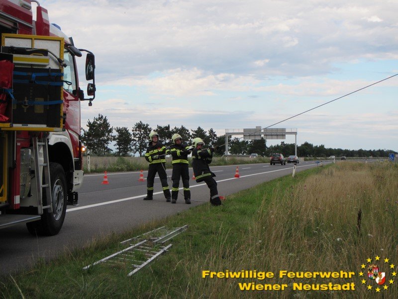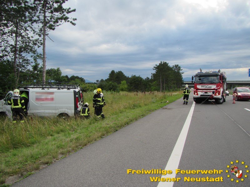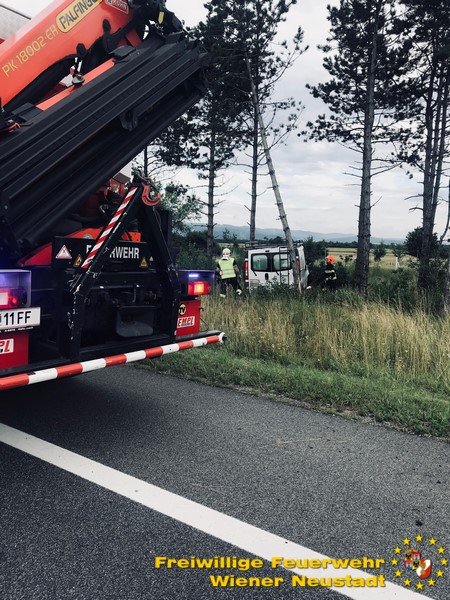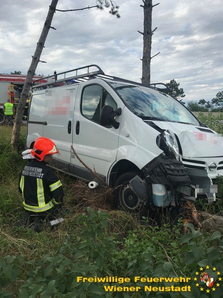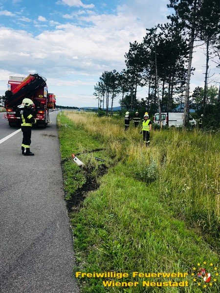 Am Mittwochabend, 11.07., musste die Feuerwehr Wiener Neustadt zu einem Verkehrsunfall auf der S4 ausrücken. Ein Kleinlieferwagen kam in Fahrtrichtung Mattersburg aus unbekannter Ursache von der Fahrbahn ab und fuhr in eine Baumgruppe neben der Schnellstraße. Das Fahrzeug kollidierte mit mehren Bäumen und blieb stecken. Der Lenker blieb dabei unverletzt.