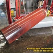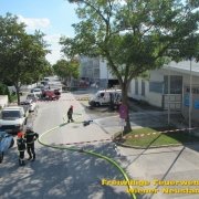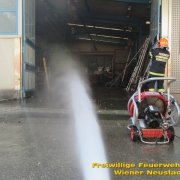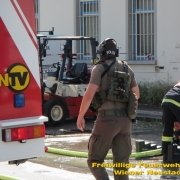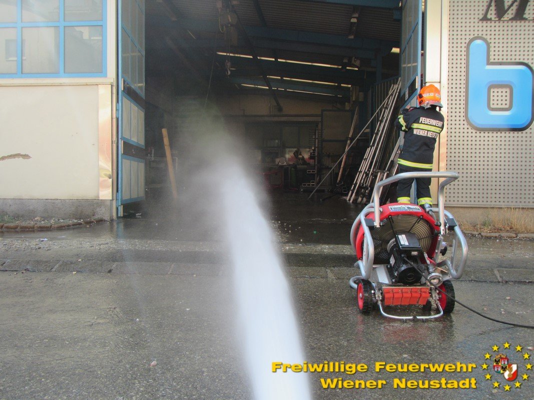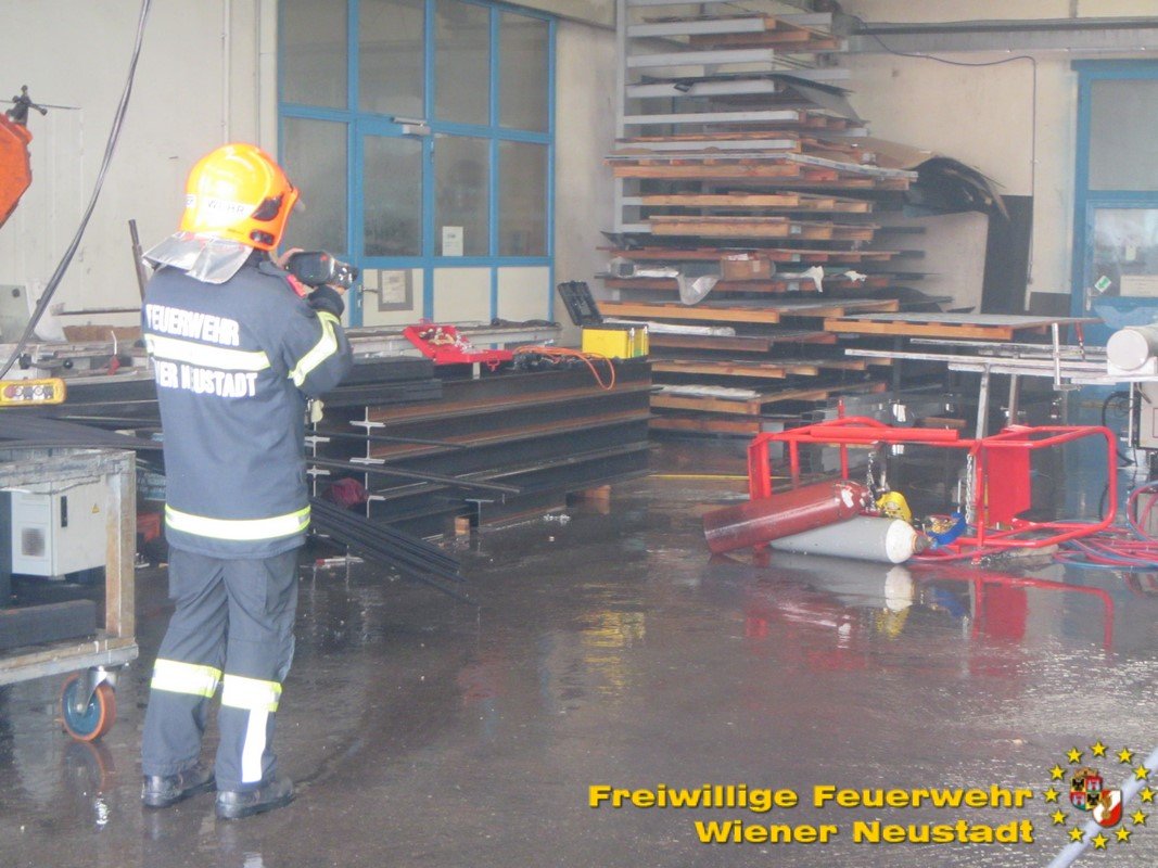 Mehrere kleinere Explosionen ließen die Bewohner der Wiener Neustädter Gymelsdorfer Vorstadt am Montag Nachmittag, 30.07., zusammenzucken. Ursprung der Knaller waren kontrollierte Schüsse von COBRA Beamten auf eine brennende Acetylengasflasche in einer Fertigungshalle mitten im bewohnten Gebiet im Zuge des Feuerwehreinsatzes.