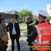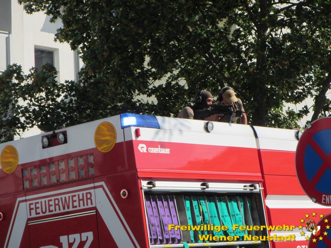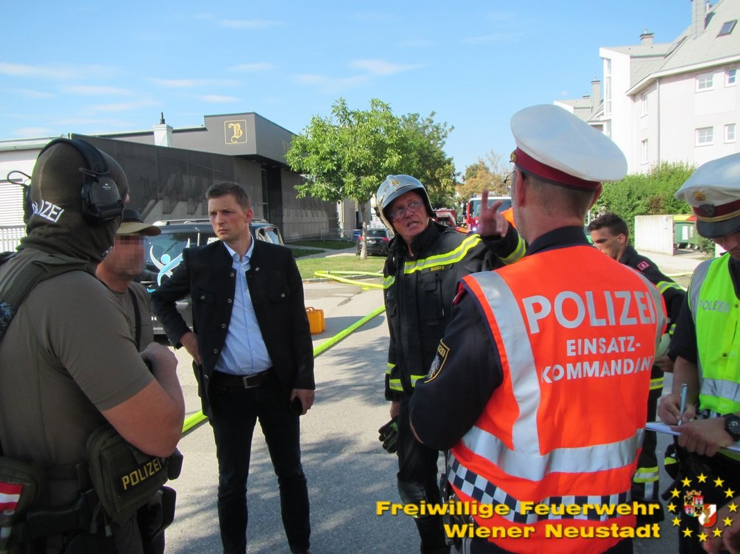 Nachdem die Gefahr gebannt war, konnten alle Einsatzkräfte wieder einrücken. Die Feuerwehr Wiener Neustadt stand mit sieben Fahrzeugen und 36 Mann im Einsatz. Außerdem stand das Rote Kreuz, die Polizei sowie das Einsatzkommando COBRA im Einsatz. Der Wiener Neustädter Magistratsdirektor Mag. Markus Biffl war ebenfalls anwesend um sich ein Bild vom Geschehen zu machen.