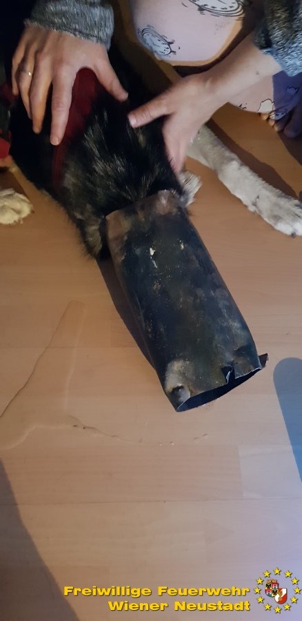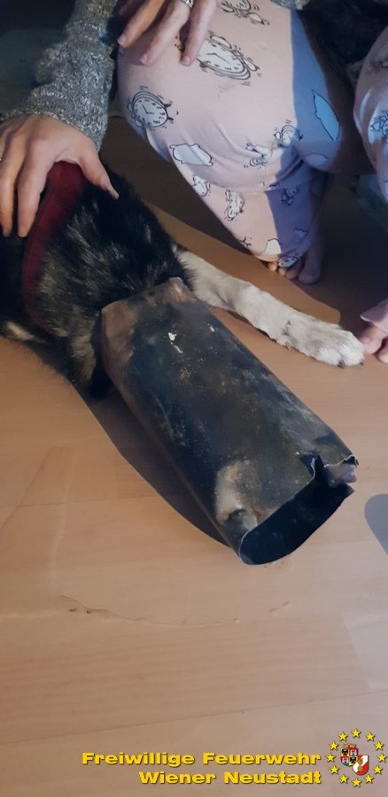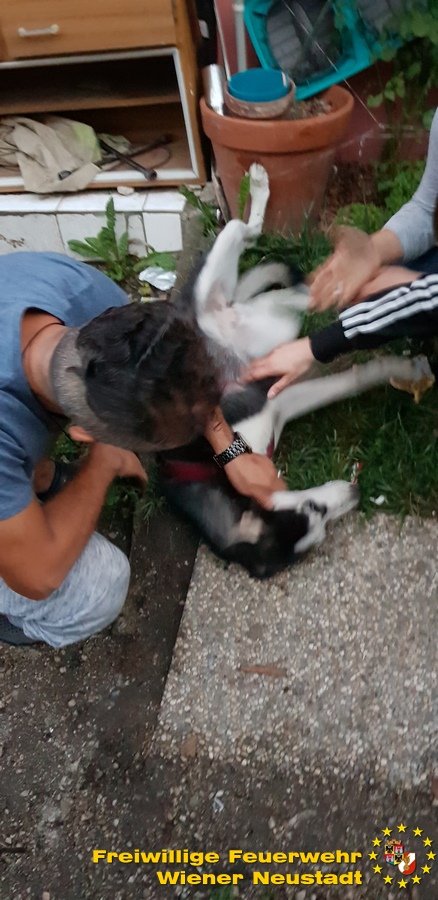 Zu einem äußerst skurrilen Einsatz musste die Nachtbereitschaft der Feuerwehr Wiener Neustadt am Samstagmorgen, 07.07., ausrücken. Ein Husky steckte mit dem Kopf in einem Heizungsrohr fest.