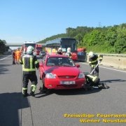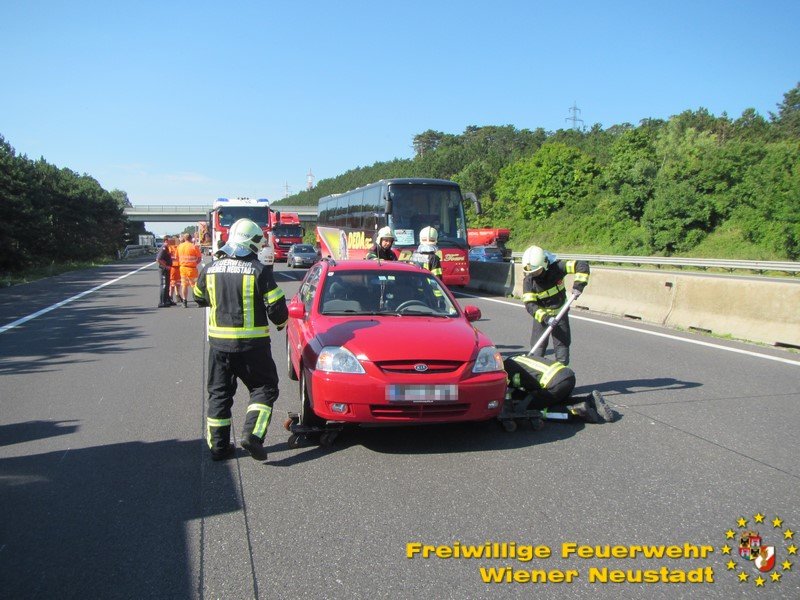 Der erste Einsatz ereignete sich gegen 08:30 kurz vor der Auffahrt Wöllersdorf. Ein Kia blieb mit Getriebeschaden auf der zweiten Fahrspur liegen. Die Feuerwehr rückte an und konnte das fahrunfähige Fahrzeug rasch aus der Gefahrenzone bergen.