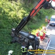 Nur 45 Minuten nach dem ersten Notruf, überschlug sich einige hundert Meter weiter hinten ein Pkw und blieb auf der Seite liegen.