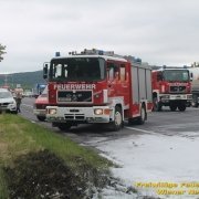 Bereits bei der Anfahrt war eine schwarze Rauchwolke weithin sichtbar. Die Holzhütte neben der B17 stand beim Eintreffen der Einsatzkräfte in Vollbrand. Der erste Löschangriff mittels zweier Leitungen brachte rasch einen Erfolg und konnte das Feuer unter Kontrolle bringen. Um Glutnester abzulöschen, wurden große Teile des Daches und der Zwischendecke aufgerissen und entfernt.