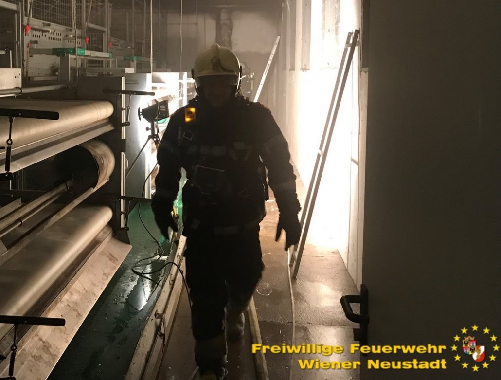 Zu einem Brand in einem Hühnerstall wurde die Mannschaft der Freiwilligen Feuerwehr Wiener Neustadt am frühen Montagabend des 3. September 2018 gerufen. Ein Tanklöschfahrzeug, welches sich gerade bei einem Brandmelderalarm befand und im Fertigwerden war, rückte sofort in die Leithakolonie aus. Dort wurden die Feuerwehrmitglieder bereits von Angestellten erwartet.