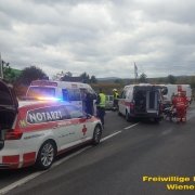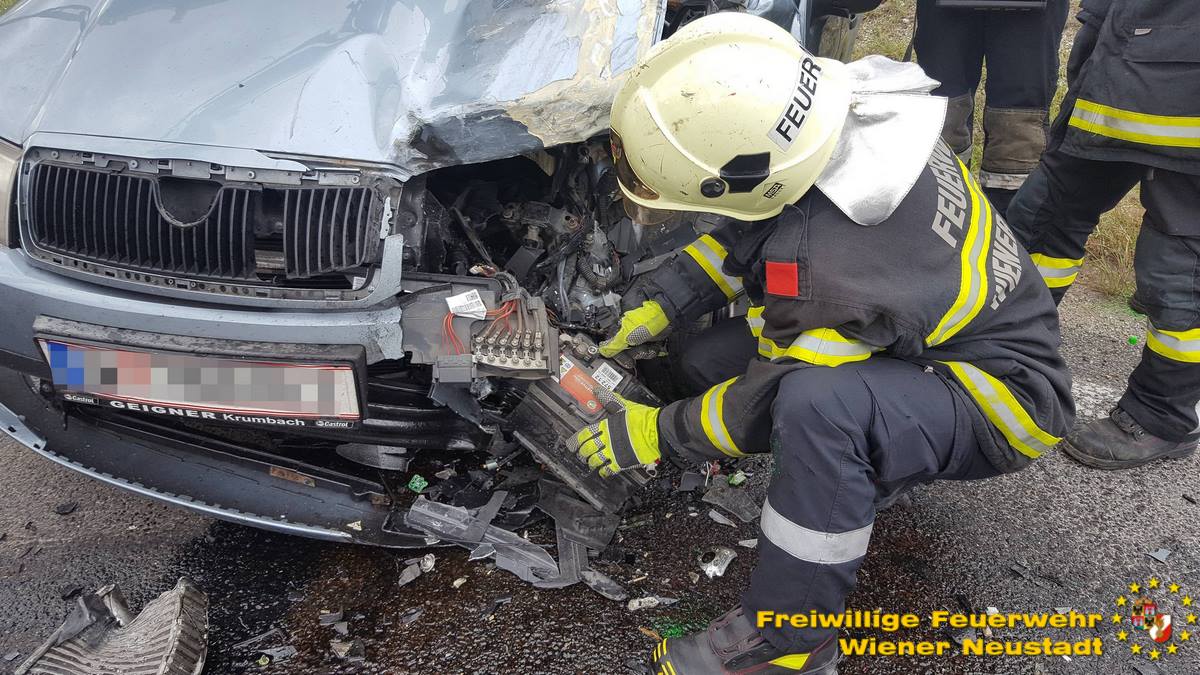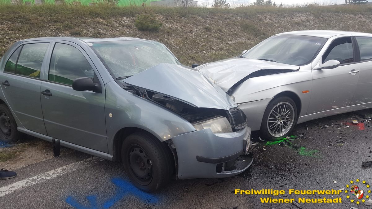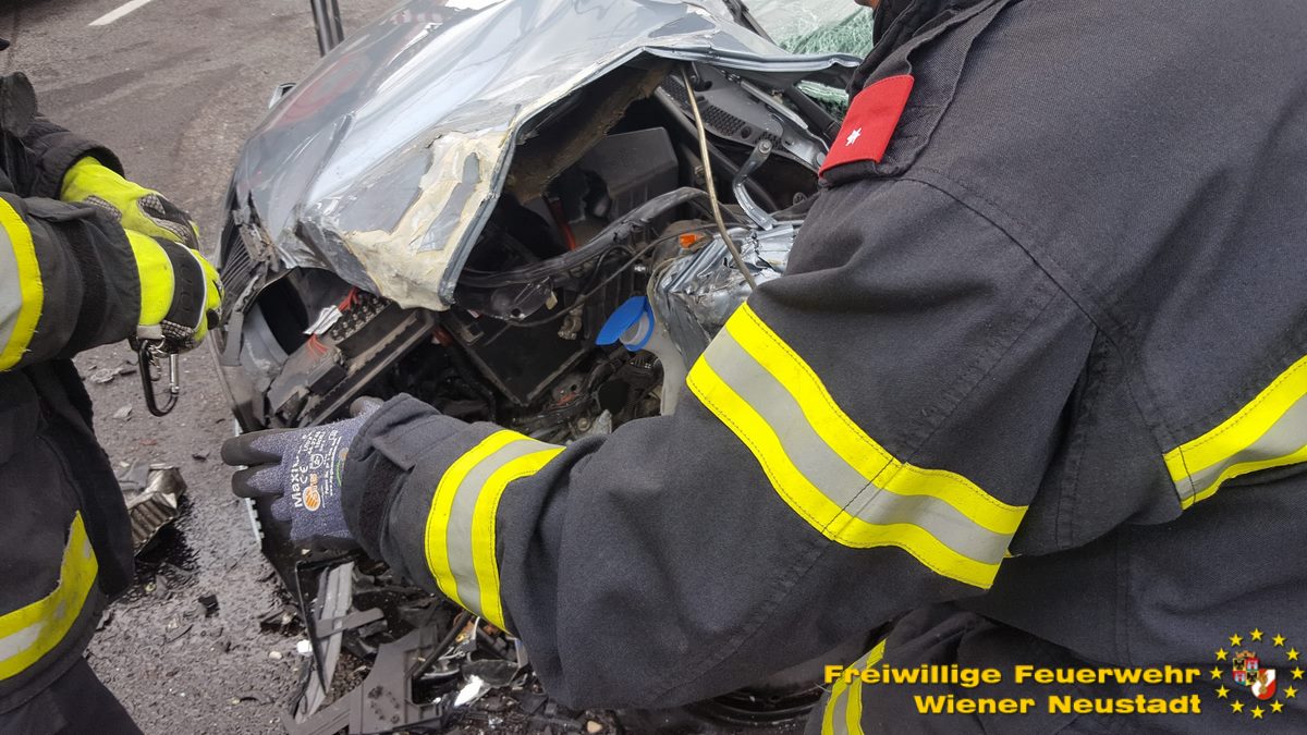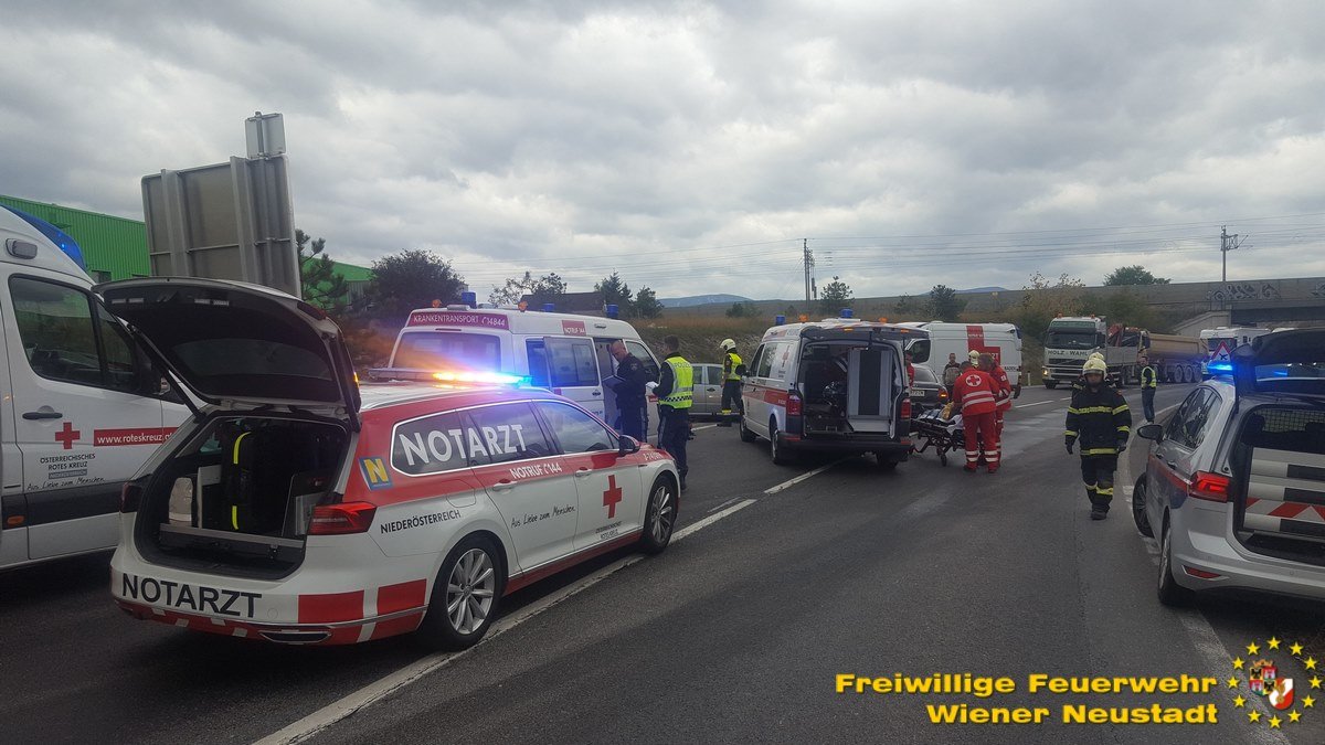 Insgesamt standen die Feuerwehr Wiener Neustadt mit drei Fahrzeugen und sechs Mann sowie die Feuerwehr Theresienfeld mit drei Fahrzeugen und sieben Mann für mehr als zwei Stunden im Einsatz. nach Auskunft des Roten Kreuzes wurden zwei Personen schwer und drei Personen leicht verletzt.