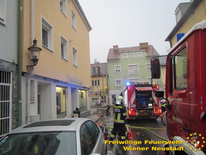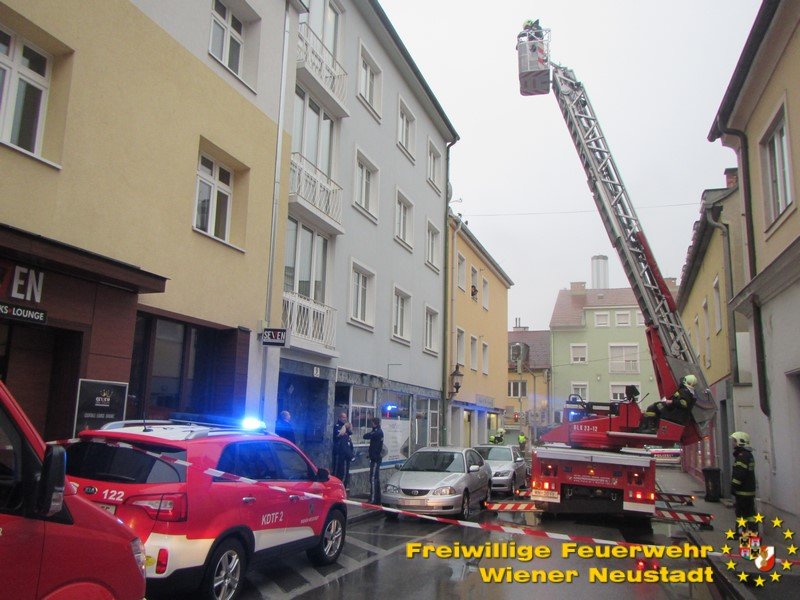 Am Samstagabend, 27.10., brannte in Wiener Neustadt eine Wohnung. In der Adlergasse brannte eine Wohnung aus. Aufgrund der Rauchentwicklung im Stiegenhaus mussten drei Personen aus einer Nachbarwohnung über der Brandwohnung mittels Drehleiter aus einem Fenster im zweiten Stock gerettet werden. Darunter auch ein Bub im Volksschulalter.