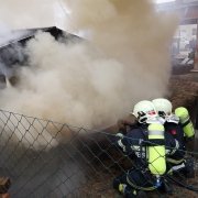 Dem raschen Eingreifen der Feuerwehr ist es zu verdanken, dass die nebenstehende im Bau befindliche Gartenhütte keinen größeren Schaden erlitt.