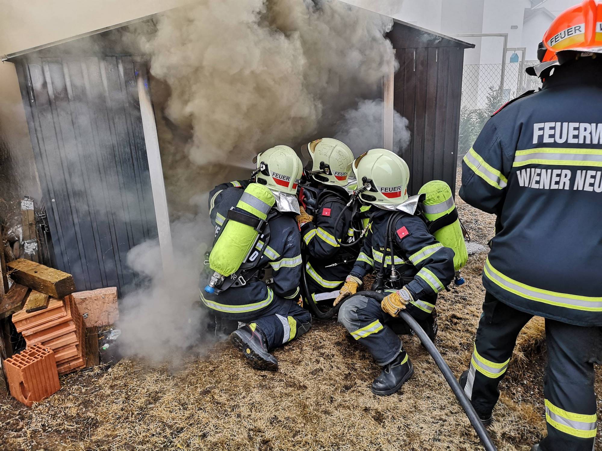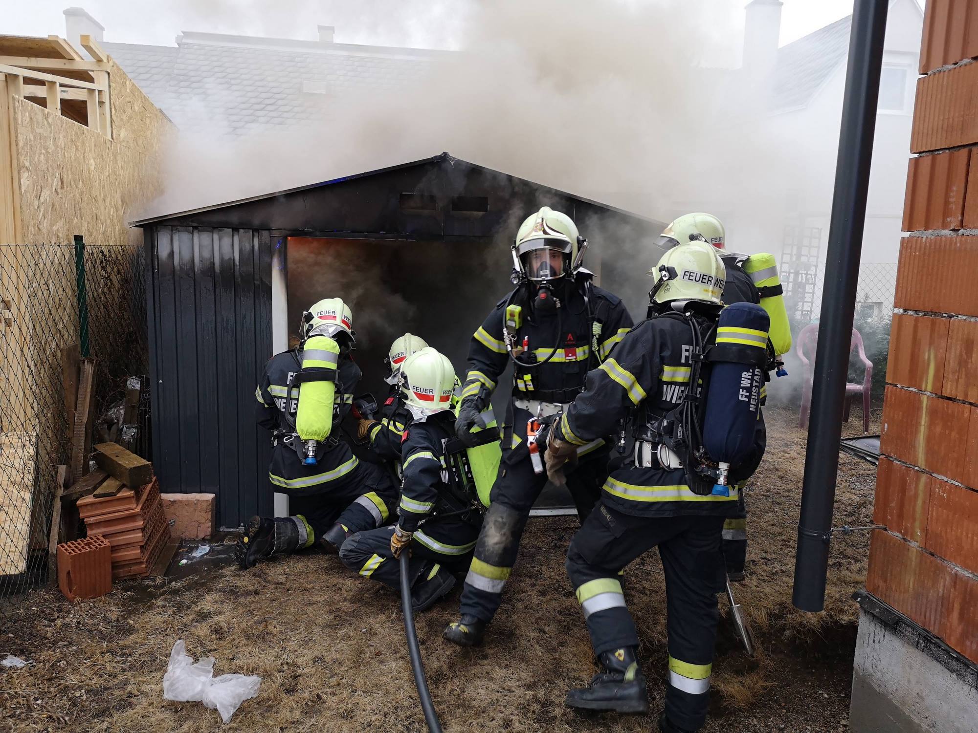 Mehrere Notrufe trafen am Freitag kurz nach 13 Uhr ein und berichteten den Brand einer Gartenhütte neben einem Rohbau in der Matzendorfergasse in Wiener Neustadt. Sofort wurde die zufällig im Haus anwesenden Freiwilligen Feuerwehrmitglieder durch den Disponenten der Bezirksalarmzentrale per Hausalarm zum Einsatz alarmiert.