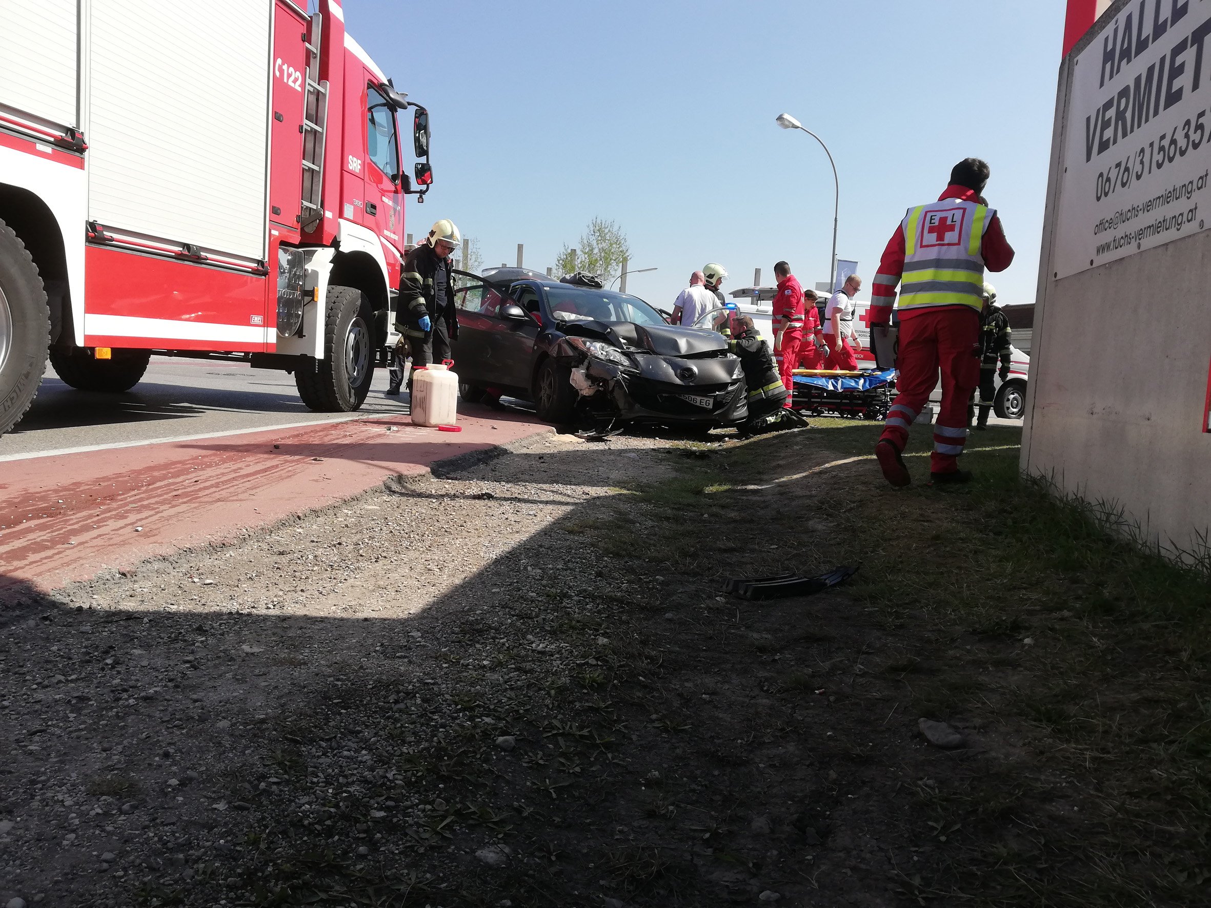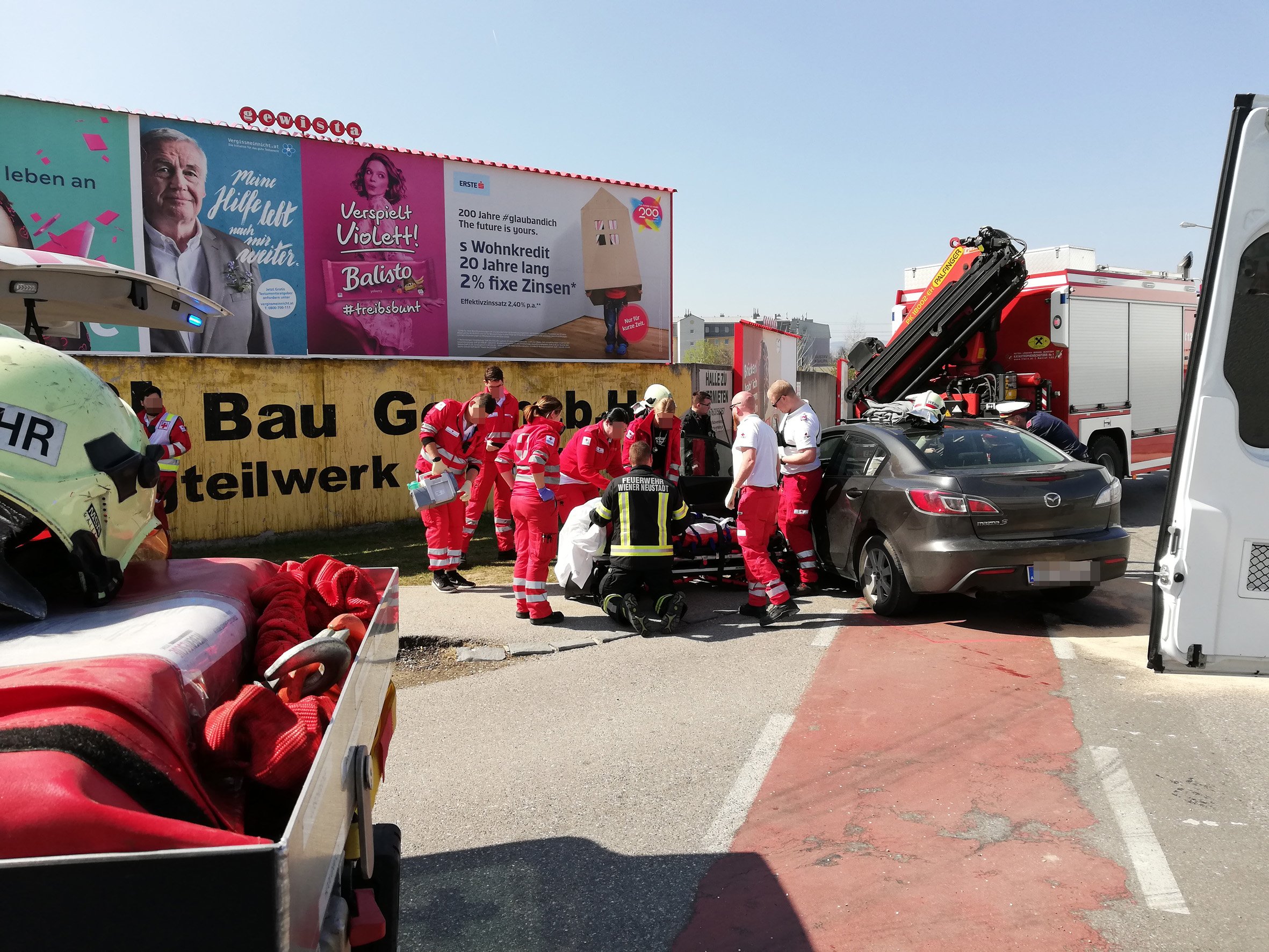 Aus unbekannter Ursache kam es am 31. März um die Mittagszeit zu einem Verkehrsunfall mit zwei Fahrzeugen. Dabei konnte eine schwangere Frau sich nicht mehr selbst aus dem Fahrzeug befreien. Über die Rettungsleitstelle wurde die Bezirksalarmzentrale der Feuerwehr Wiener Neustadt informiert. Sofort wurde die Hausmannschaft mit dem Vorausrüstfahrzeug und dem schweren Rüstfahrzeug zur Einsatzstelle mit dem Alarmstichwort „Menschenrettung“ entsandt.