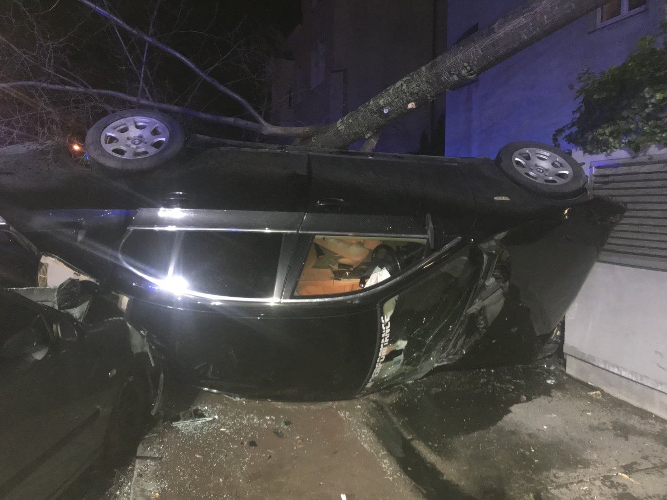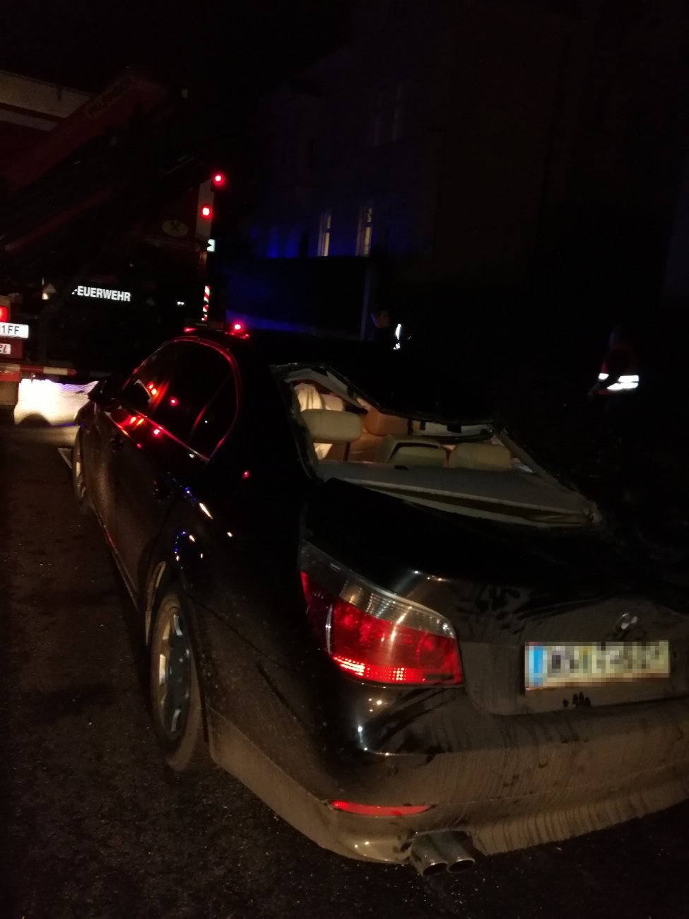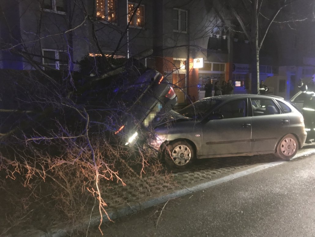 Zu „Personen in Notlage“ rückte die Feuerwehr Wiener Neustadt gegen 21.30 Uhr aus. Nur einige hundert Meter von der Feuerwehrzentrale Wiener Neustadt entfernt, verlor ein Wiener Neustädter BMW- Lenker auf regennasser Fahrbahn die Kontrolle über sein Fahrzeug. Er kollidierte mit einem Baum und riss diesen um. Das Auto überschlug sich daraufhin mehrfach über ein anderes geparktes Auto und blieb anschließend auf der Motorhaube hängend, am Dach liegen.