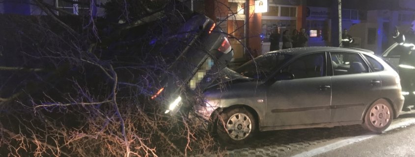 Auf regennasser Fahrbahn kam Samstagabend, 21.12., ein junger BMW Lenker aus Wiener Neustadt am Babenbergerring von der Fahrbahn ab. Der BMW überschlug sich mehrmals, riss einen Baum um und rollte über einen geparkten Pkw. Die beiden Insassen wurden unbestimmten Grades verletzt und konnten sich nur mit Mühe aus der Beifahrertüre aus dem Auto retten.