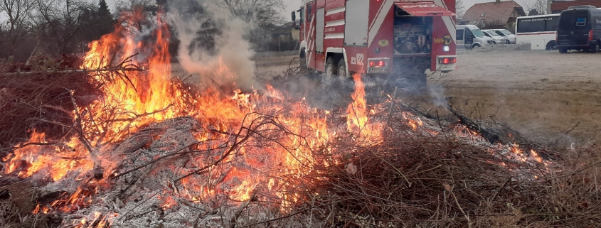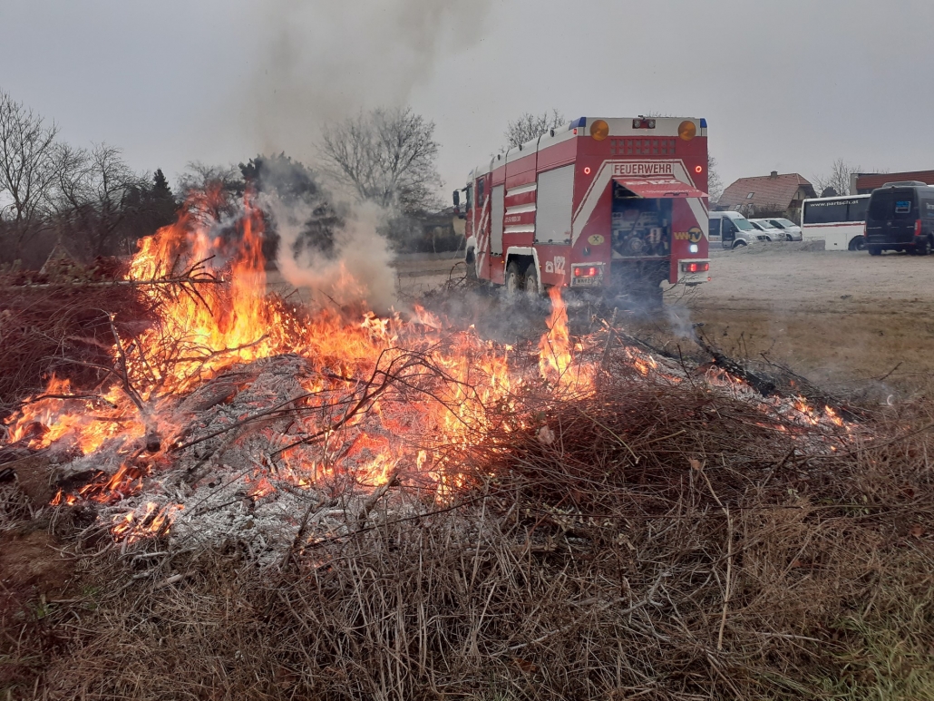 Die Einsatzadresse konnte aufgrund der starken Rauchentwicklung rasch gefunden werden. Auf einem Firmengelände wurde von einem Mitarbeiter Grünschnitt aus mehreren Jahren verbrannt. Da sich das Feuer nur auf einen größeren Komposthaufen beschränkte, konnten die weiteren, sich auf der Anfahrt befindlichen, Kräfte wieder umdrehen und in die Feuerwehrzentrale einrücken.