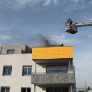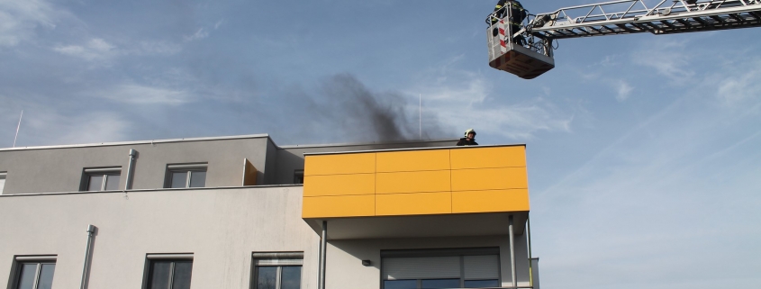 Vor Ort eingetroffen erkundete der Einsatzleiter BR Josef Bugnar die Lage und wies die nachtreffenden Kräfte ein. Der Trupp des ersten eingetroffenen Tanklöschfahrzeuges ging über das Stiegenhaus mit einer Leitung zur Brandwohnung vor. Da der Bau erst vor wenigen Wochen an die Mieter übergeben wurde, war zufällig eine Vertreterin der Baufirma anwesend, welche den Einsatzkräften Zugang zur Wohnung ermöglichte.